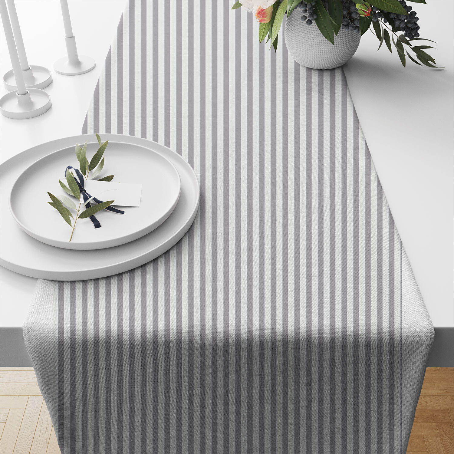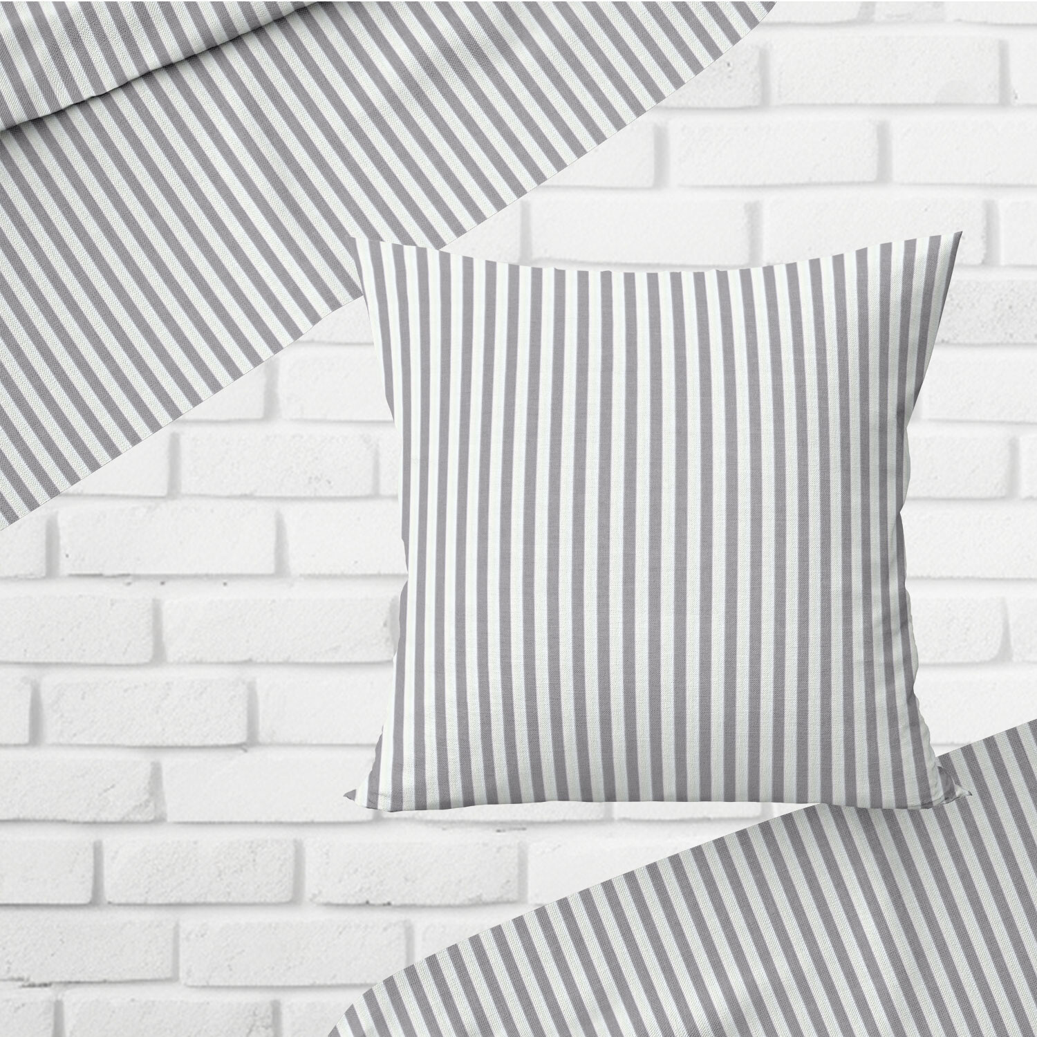 Tissu coton au métre couleur blanche rayé gris