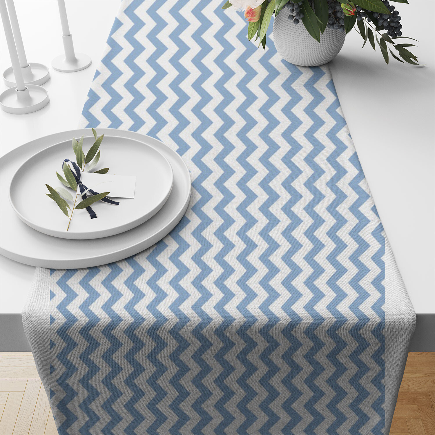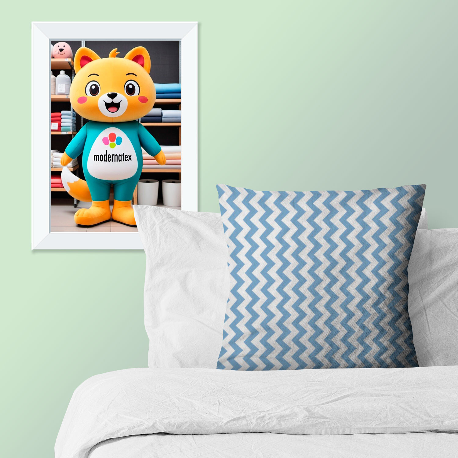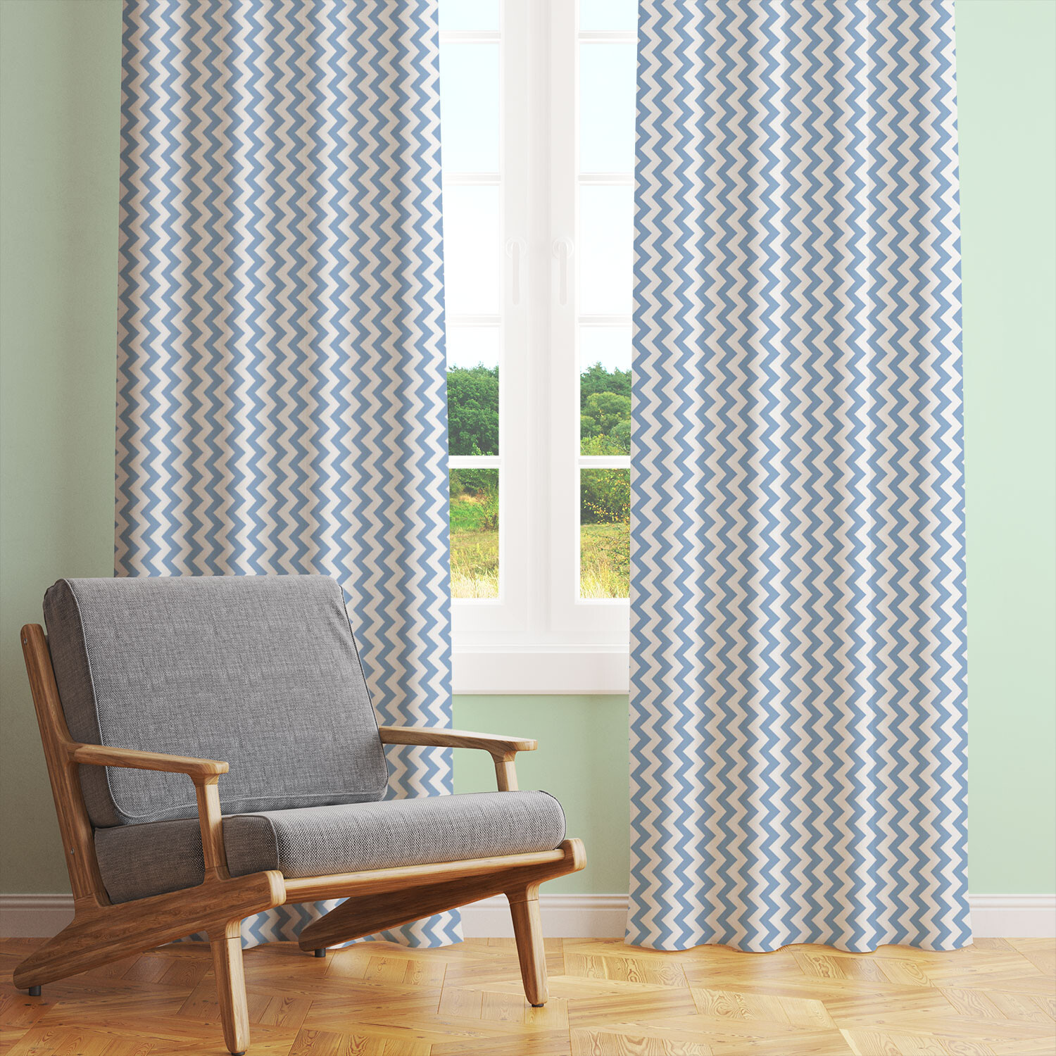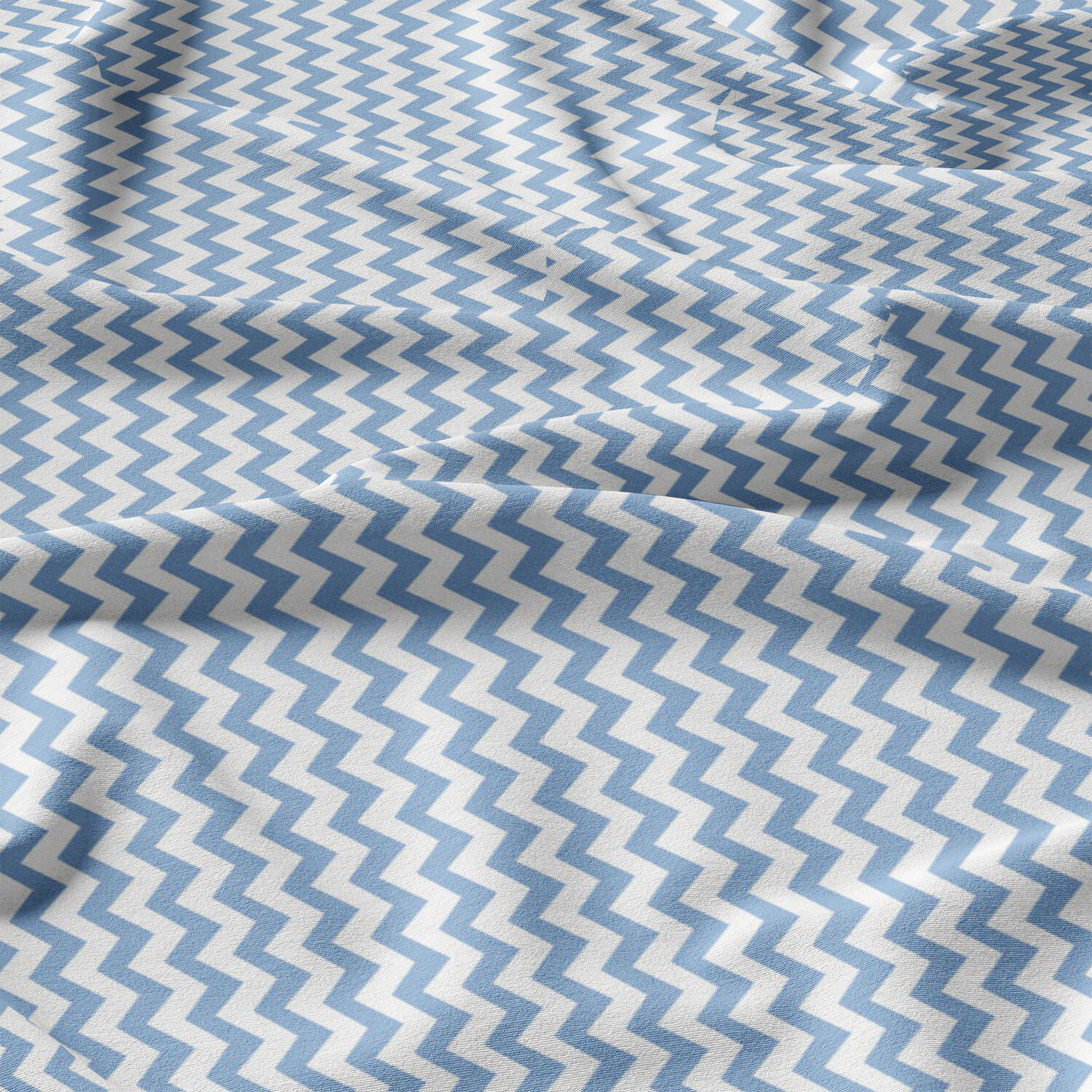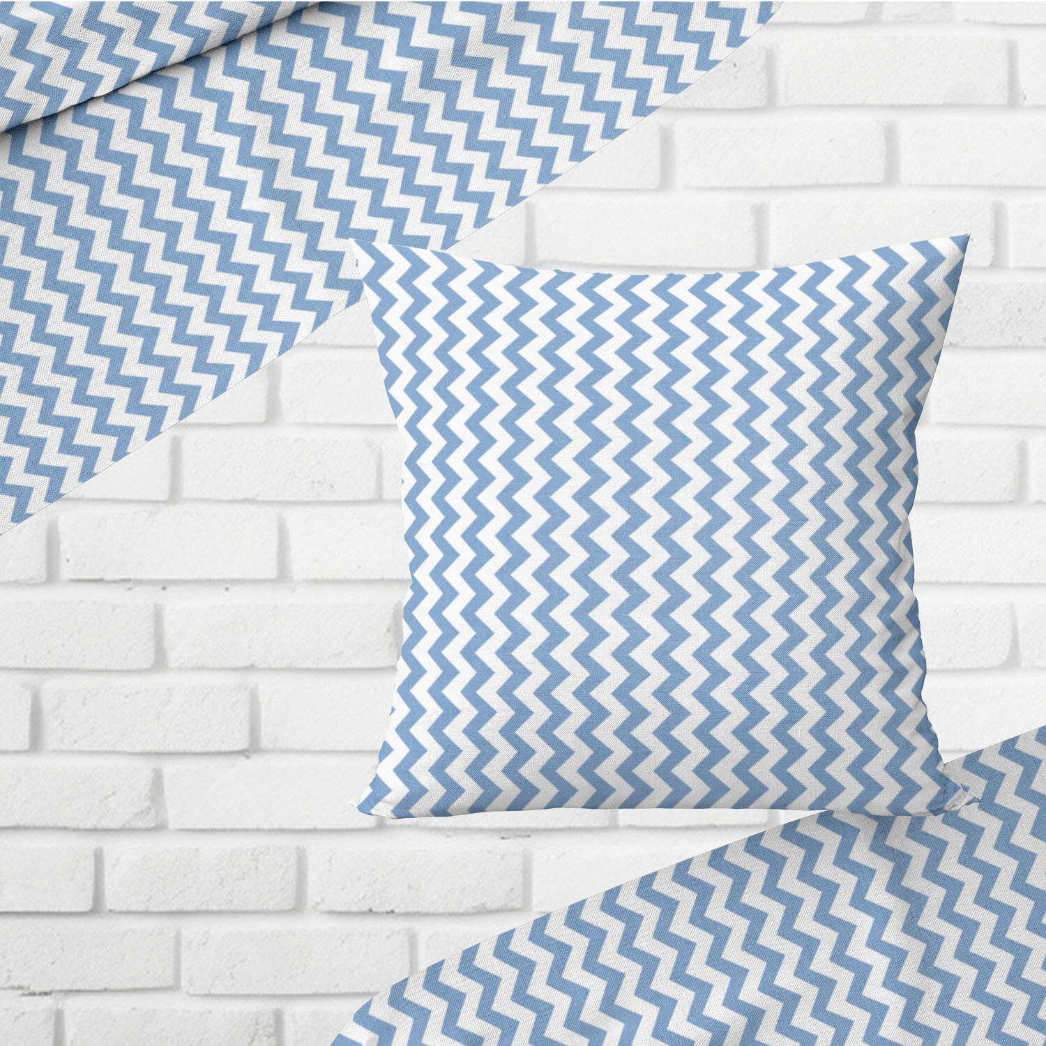Description Tissu coton au métre couleur blanche zigzag bleu