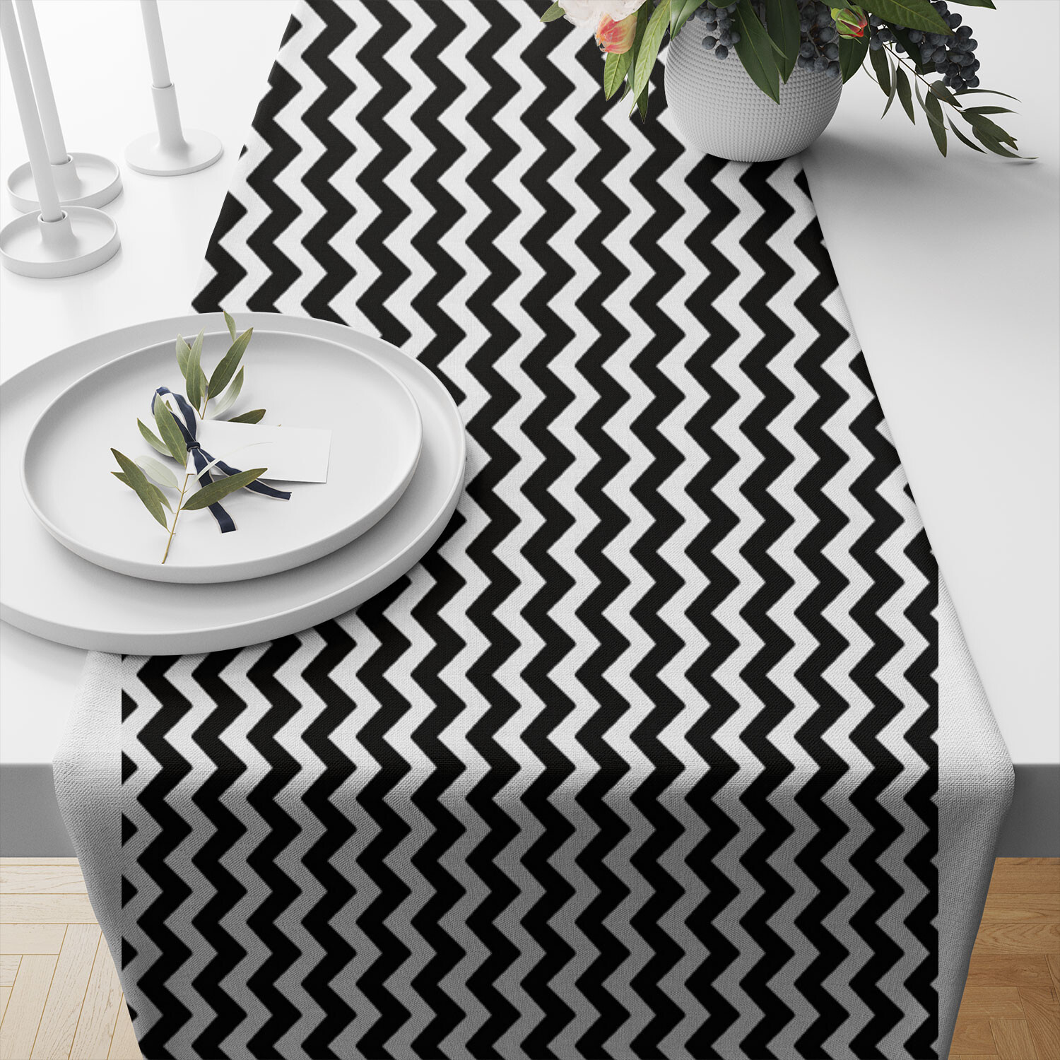 Tissu coton au métre couleur blanche zigzag noir