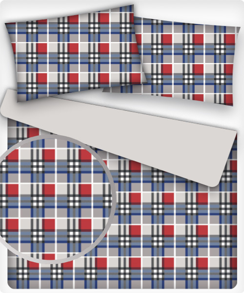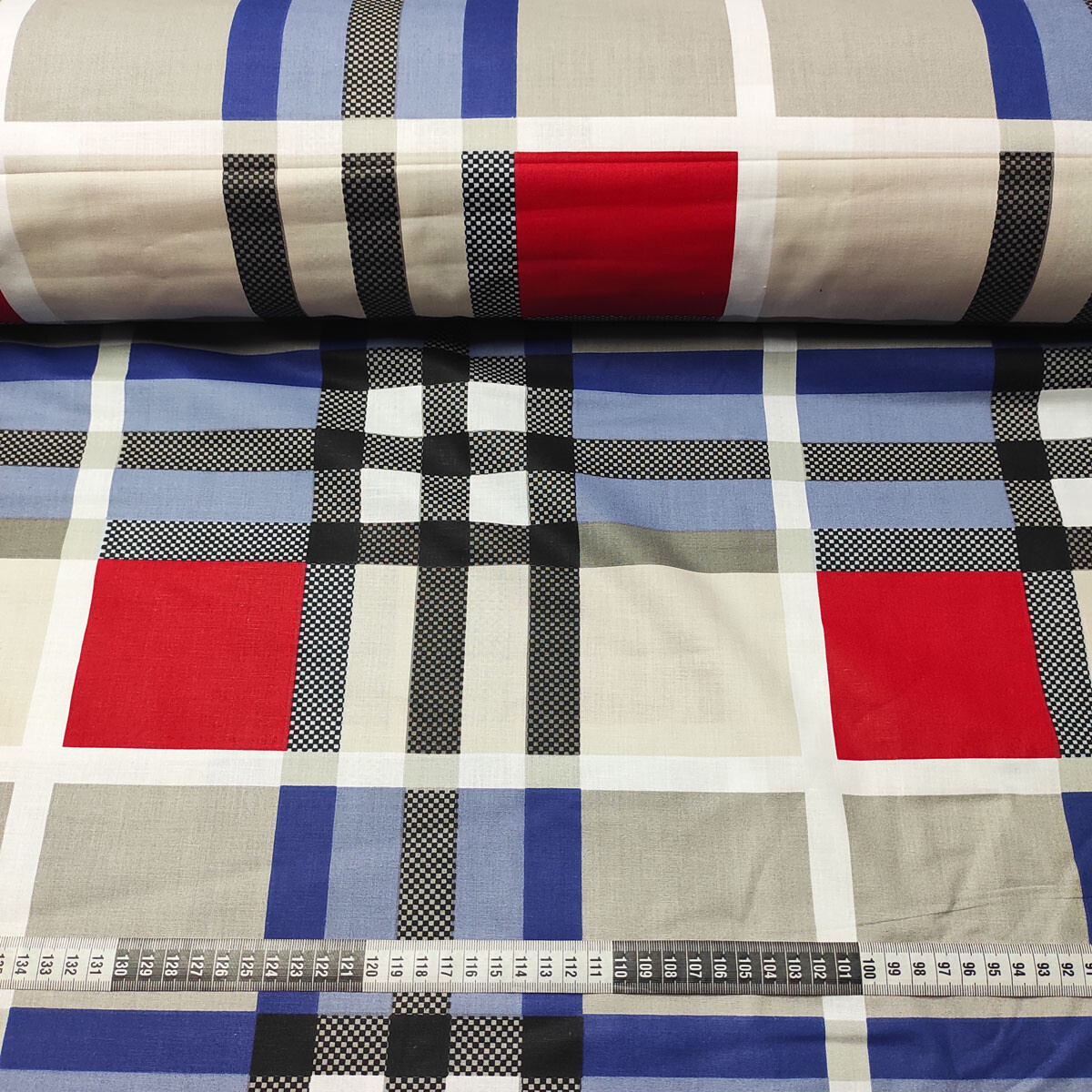 Tissu coton au métre couleur bleu grand carreaux rouge