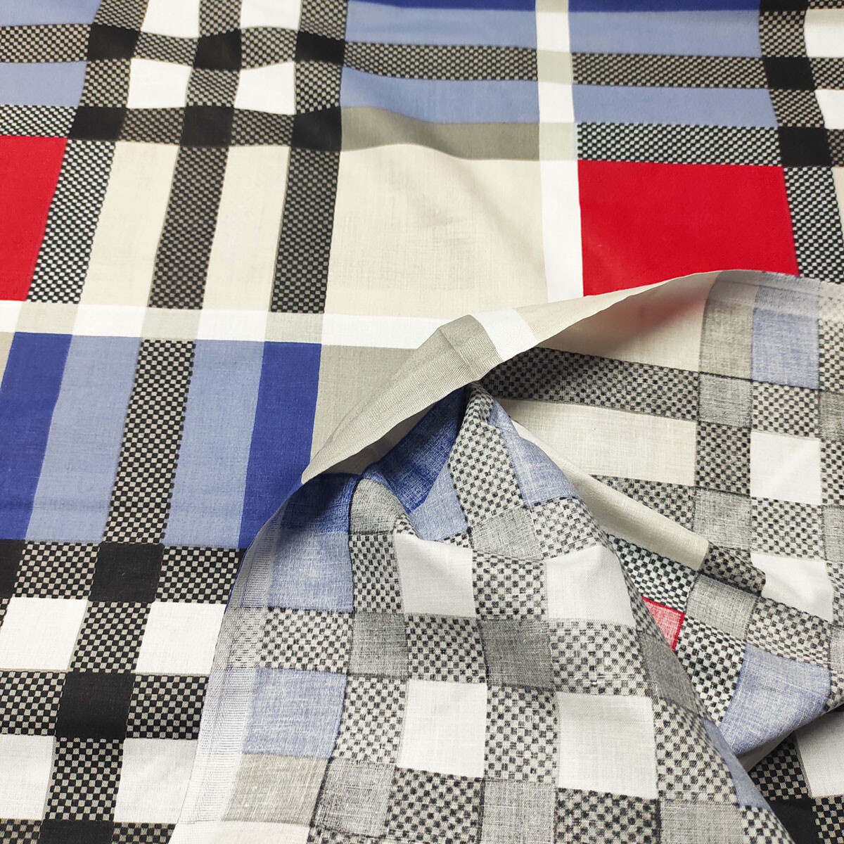 Description Tissu coton au métre couleur bleu grand carreaux rouge