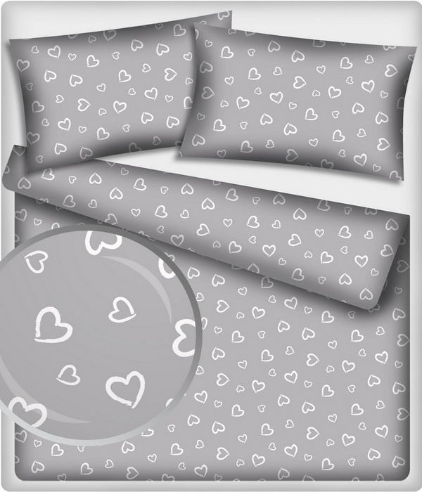 Description Tissu coton au métre couleur gris coeurs blanche 373