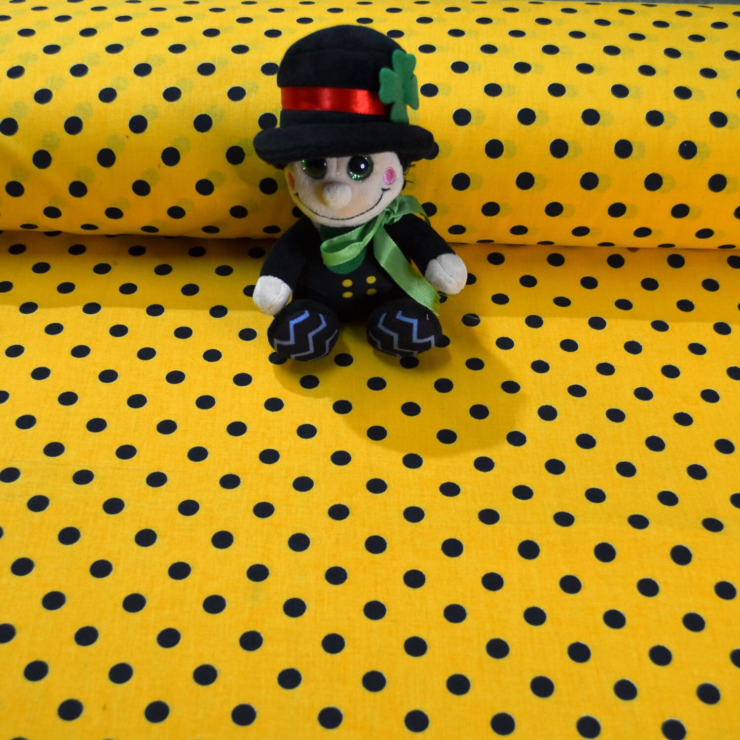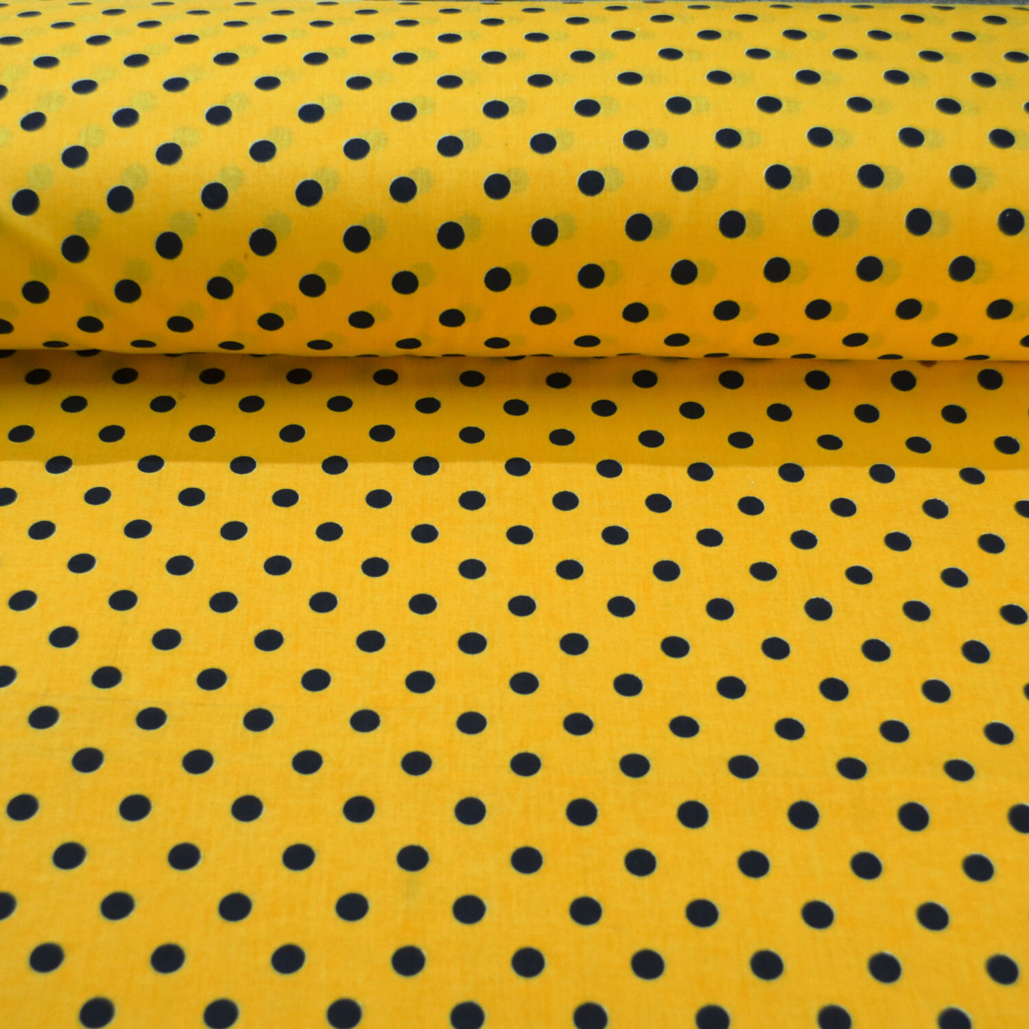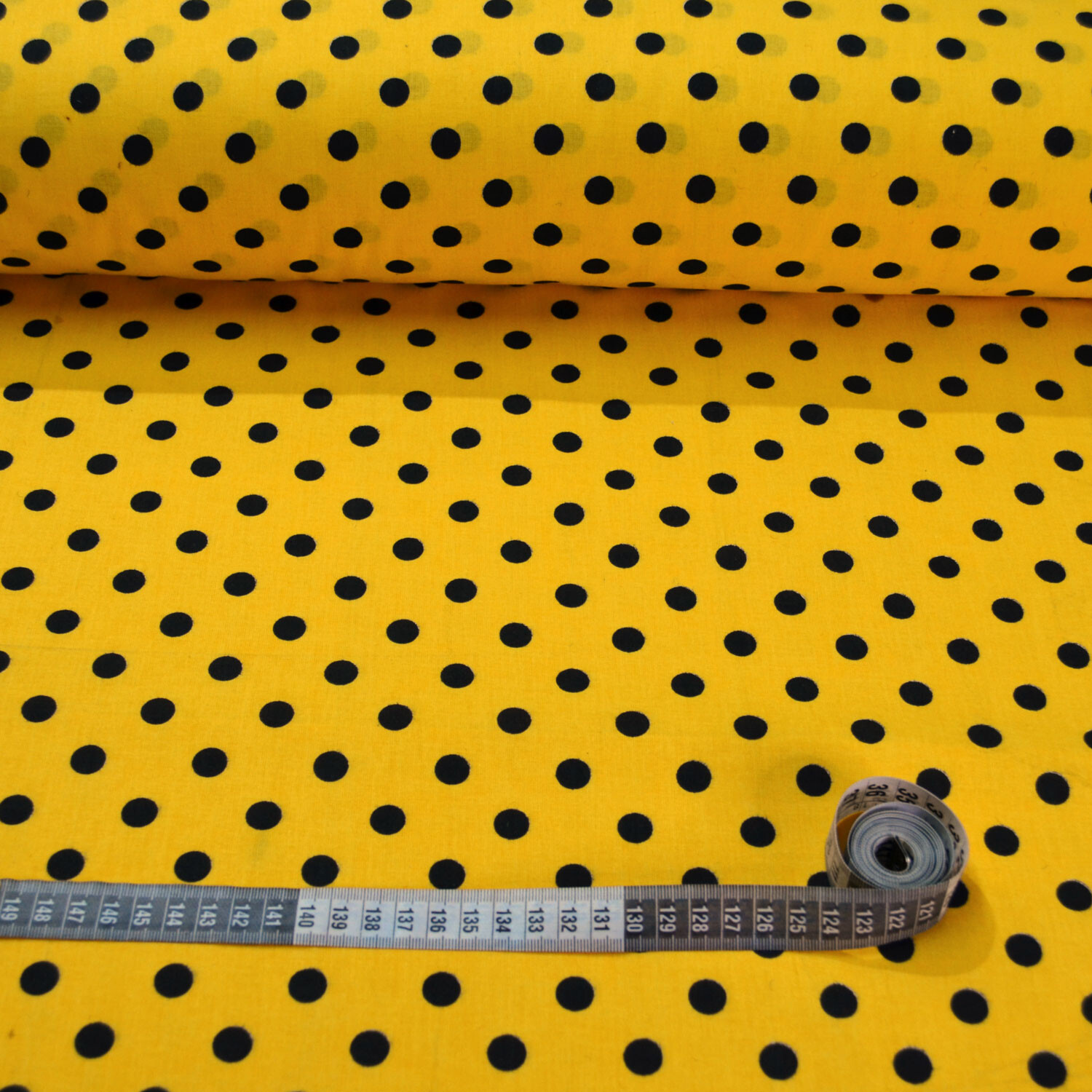 Tissu coton au métre couleur Jaune pois Noire 10 mm