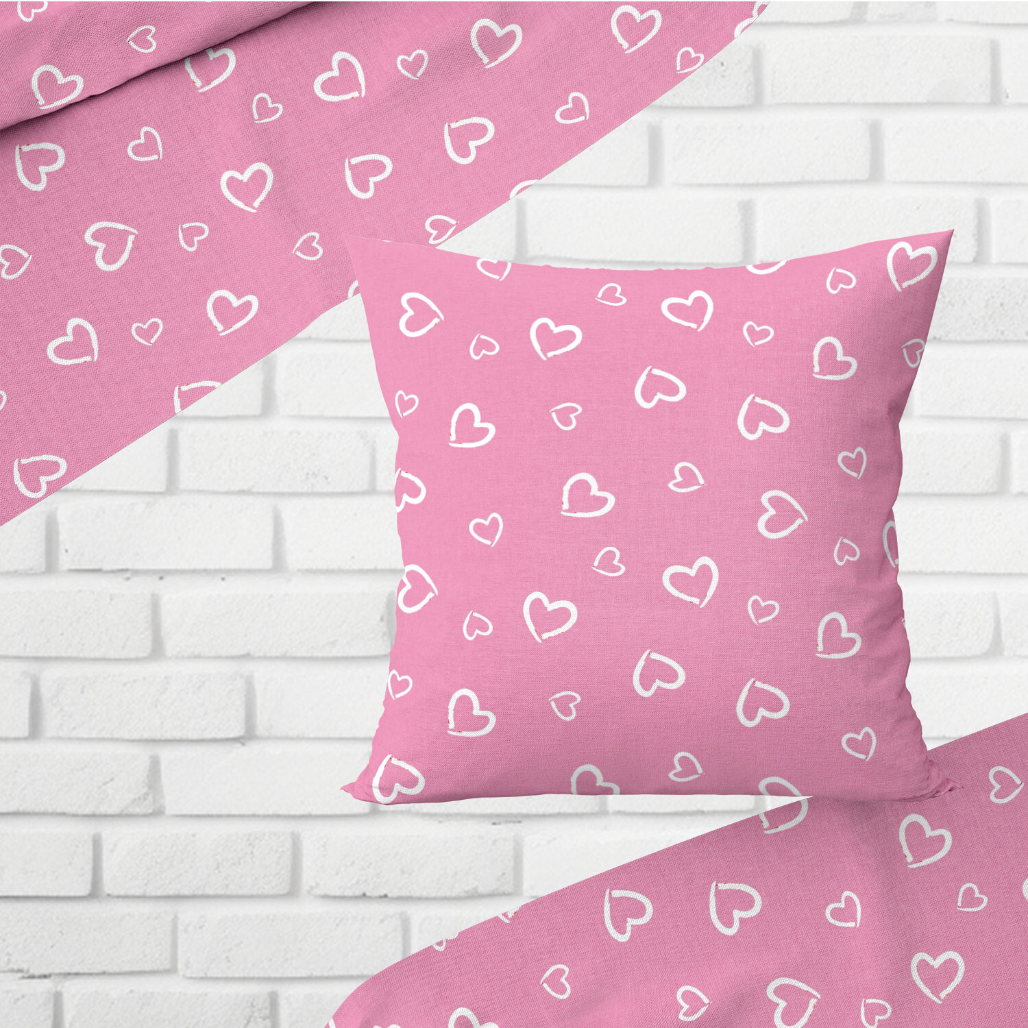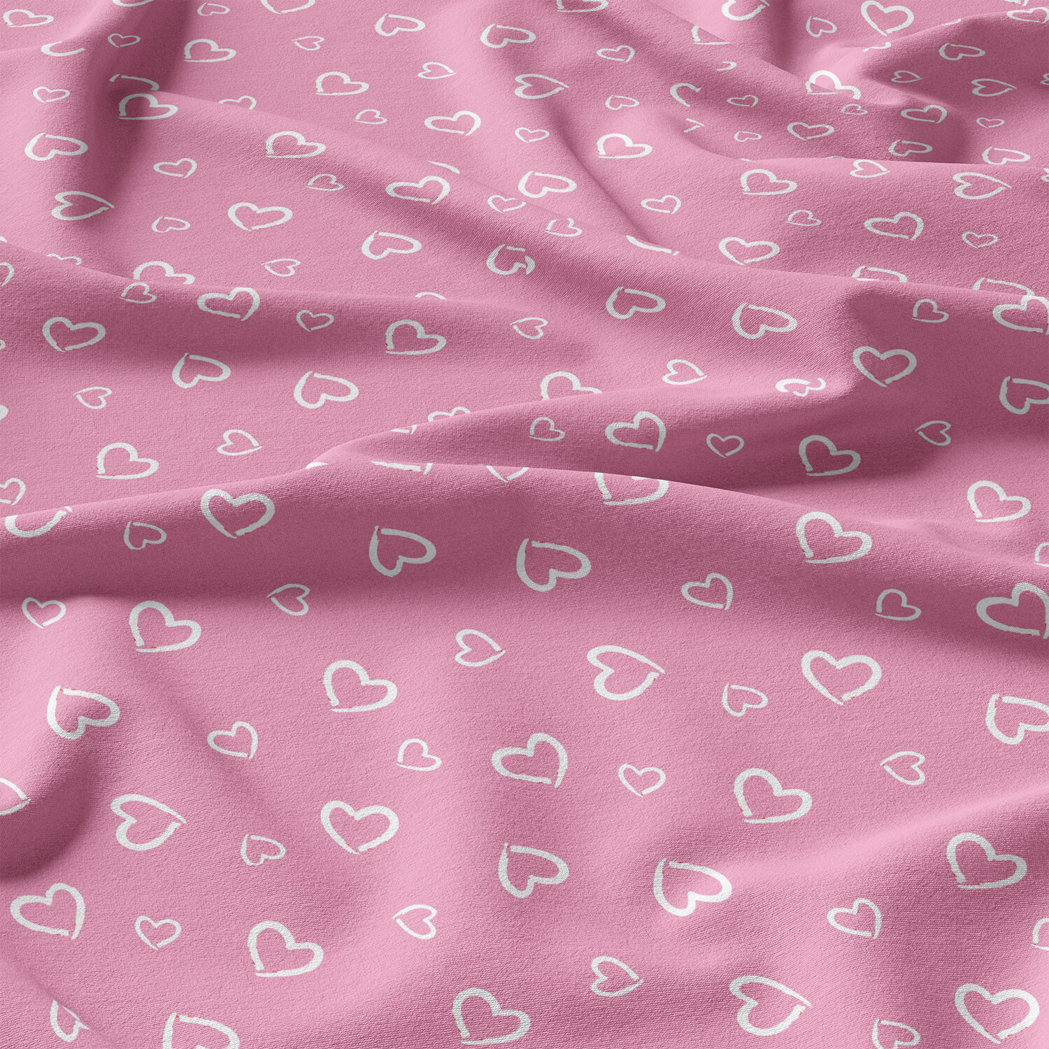Tissu coton au métre couleur rose coeurs blanche