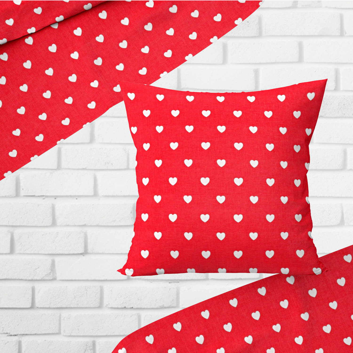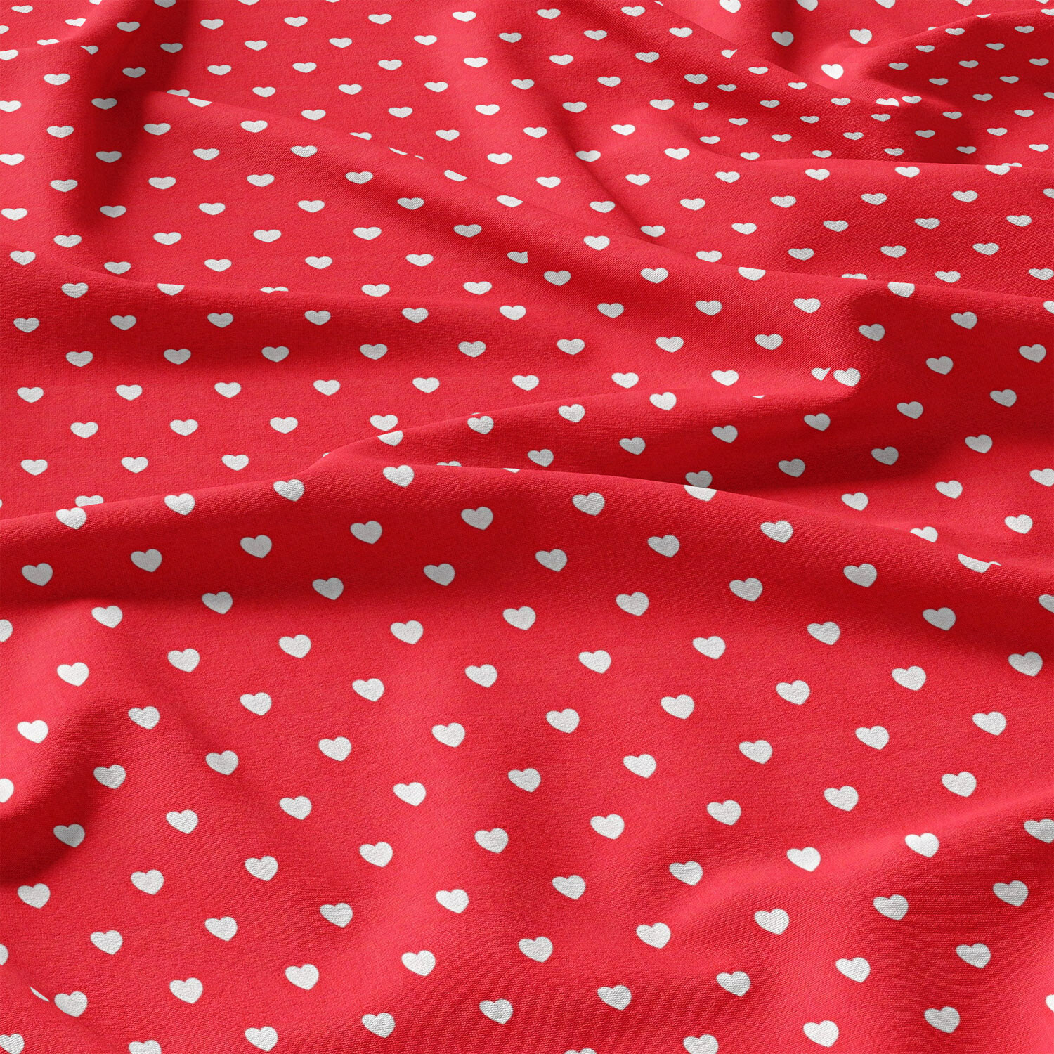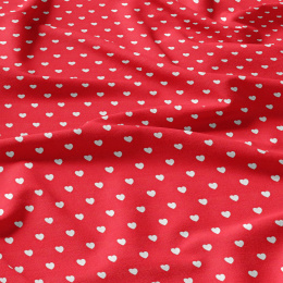 Tissu coton au métre couleur rouge coeurs mini blanche