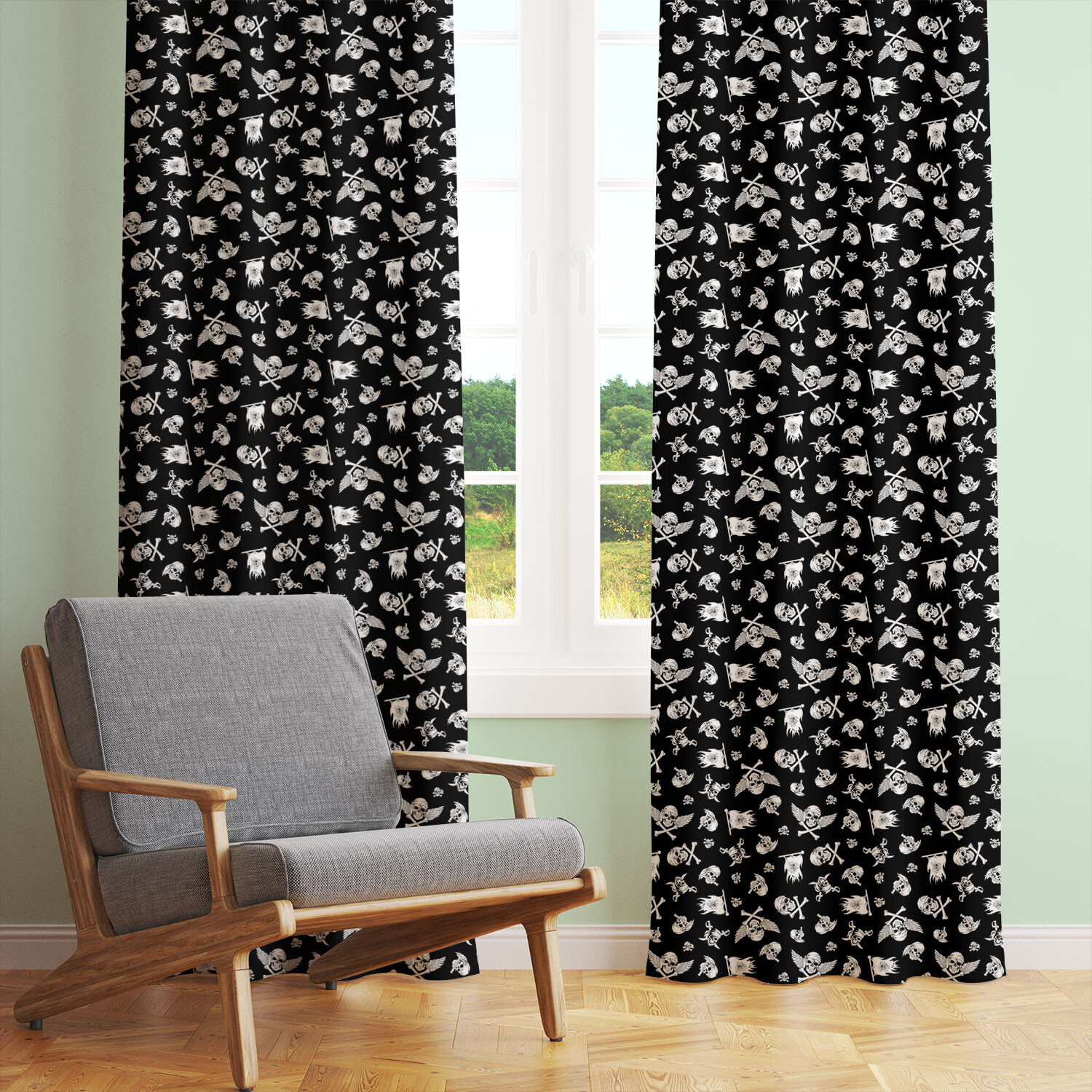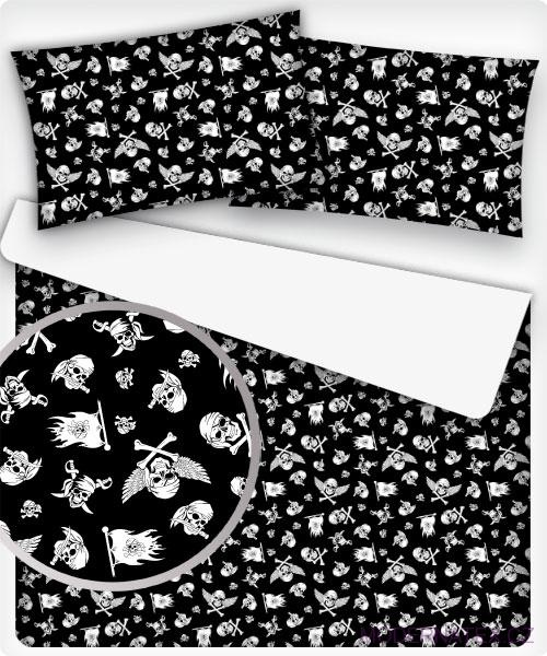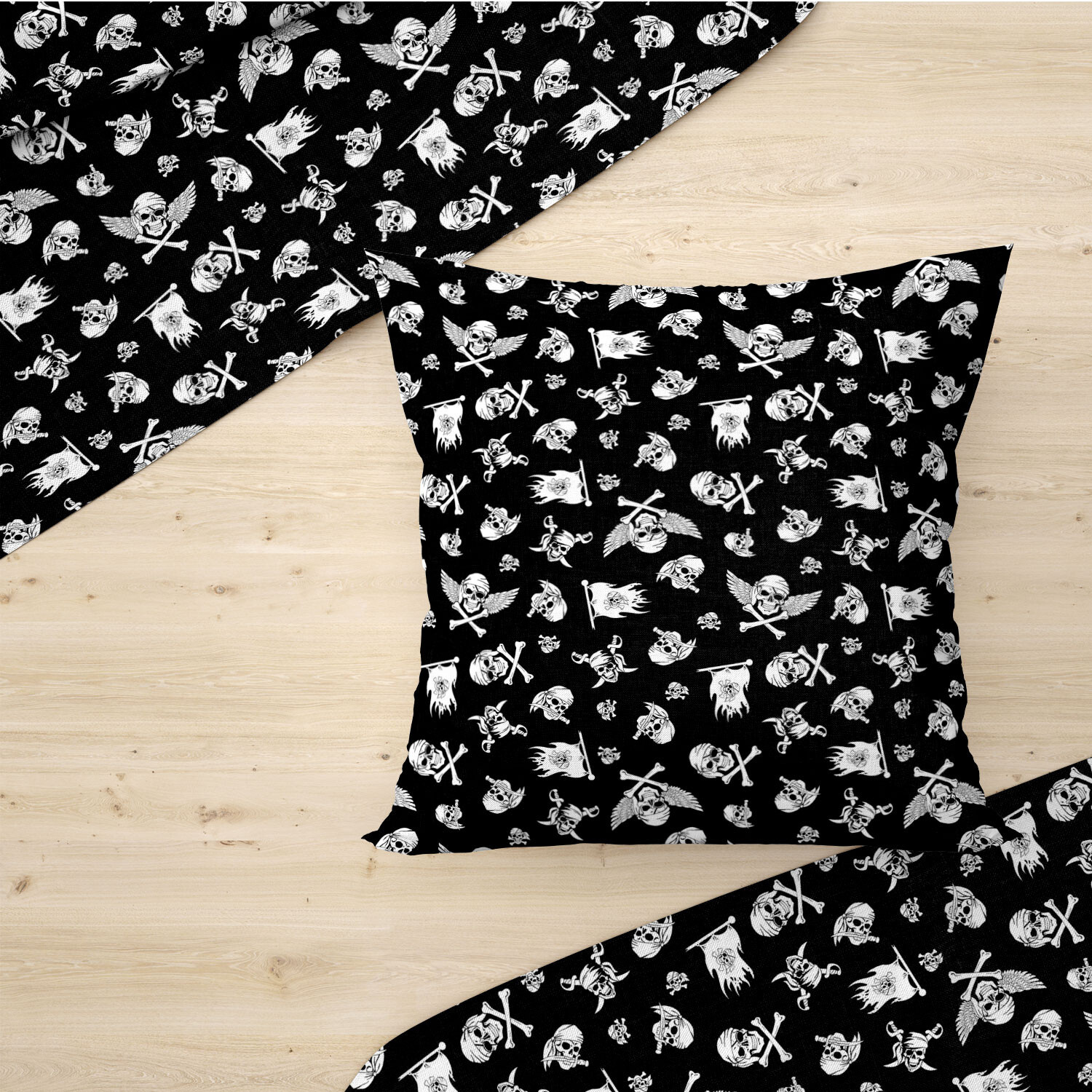 Description Tissu en coton uni au mètre, 125 g/m², largeur 160 cm, Crânes noir