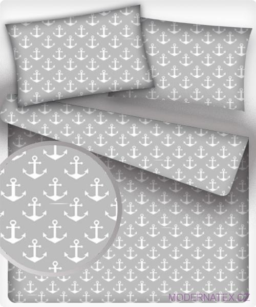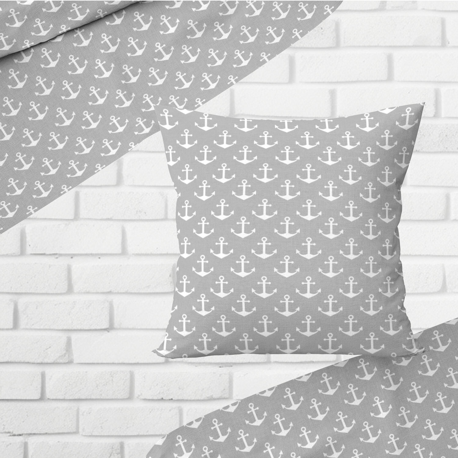 Tissu coton au métre imprimé Ancres blanche sur gris