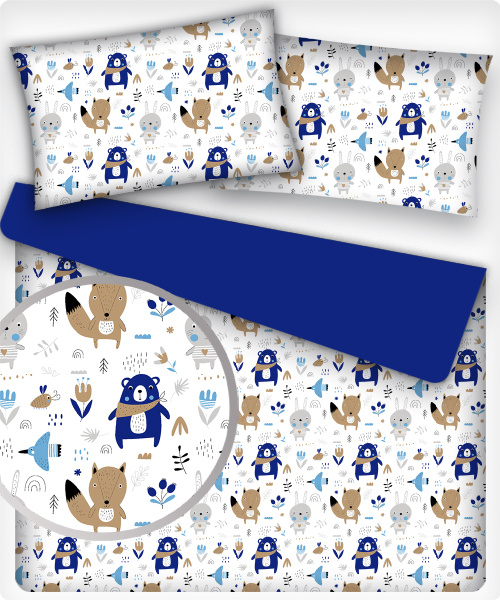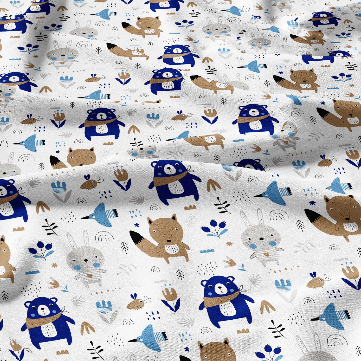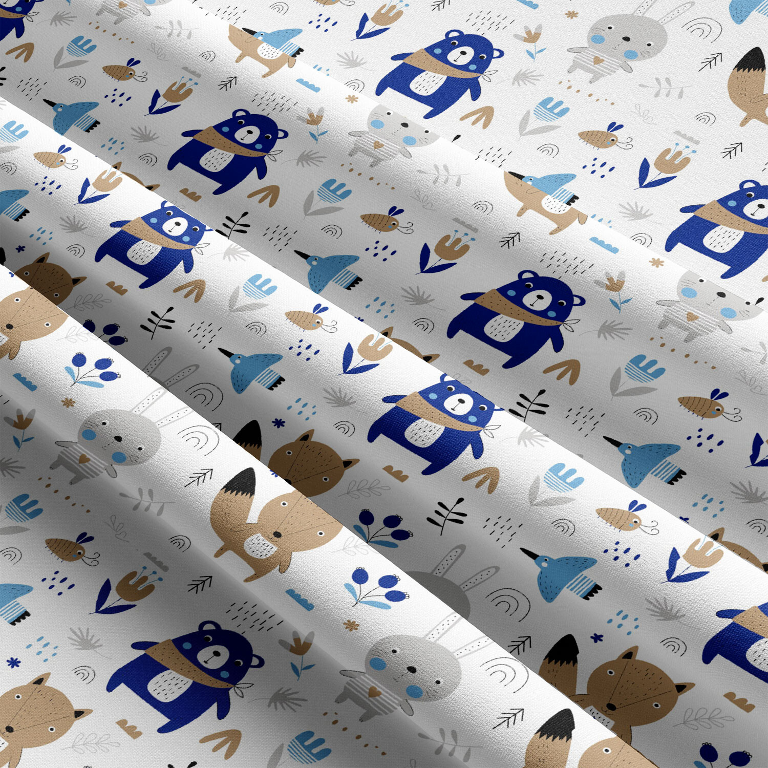 Tissu coton au métre imprimé Animaux drôles couleur bleu