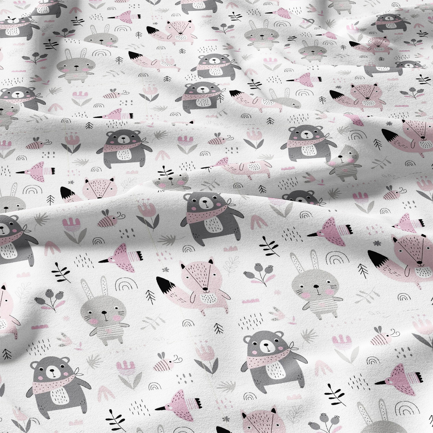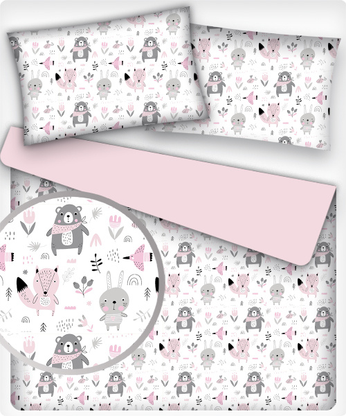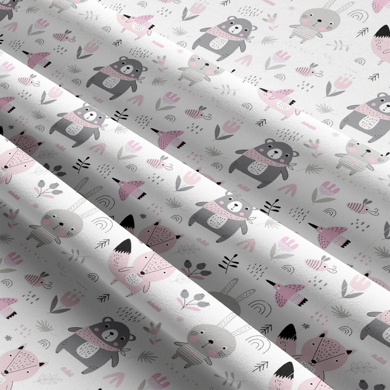 Tissu coton au métre imprimé Animaux drôles couleur rose