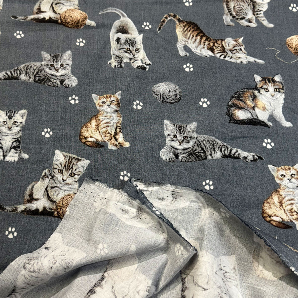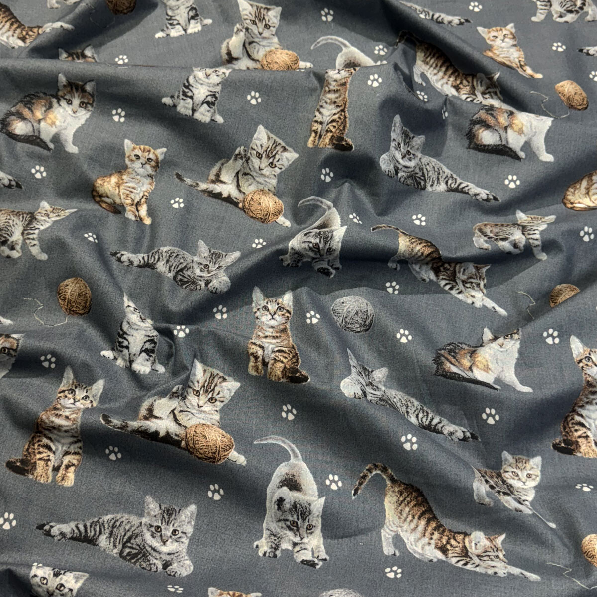 Tissu coton au métre imprimé Chat et sindice couleur gris