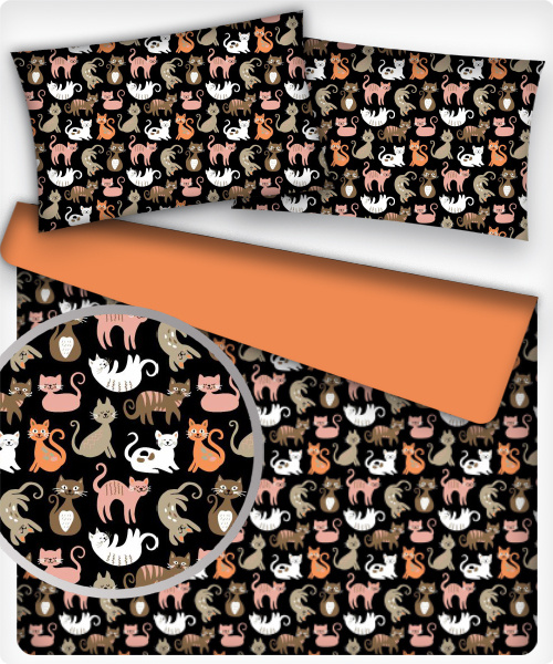 Description Tissu coton au métre imprimé Chats couleur noir 207