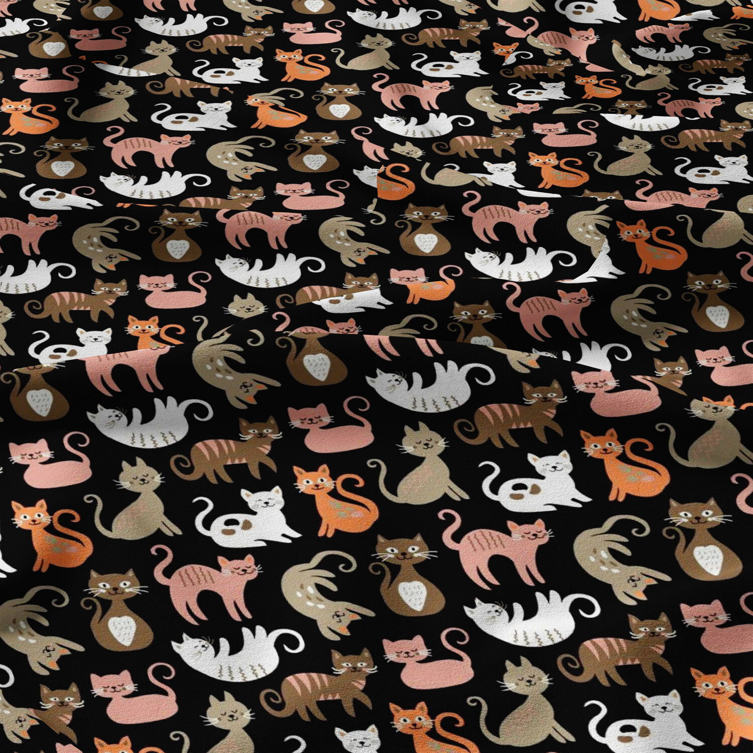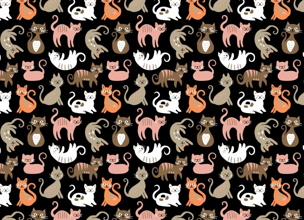 Tissu coton au métre imprimé Chats couleur noir 207