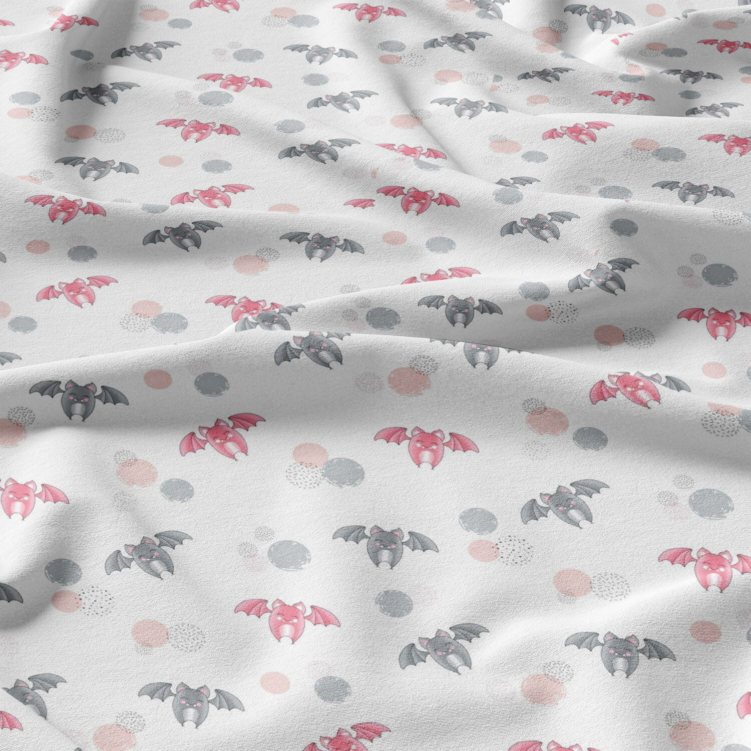 Description Tissu coton au métre imprimé Chauve souris couleur blanche