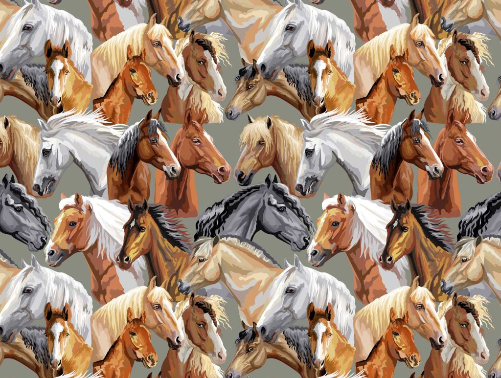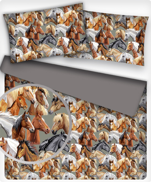 Description Tissu coton au métre imprimé Chevaux couleur gris 224