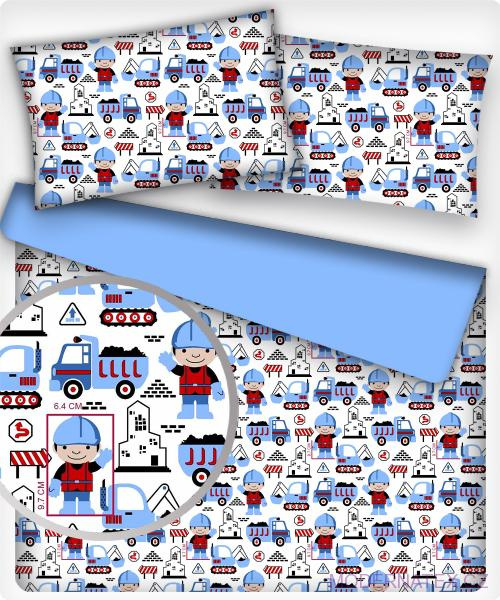 Description Tissu coton au métre imprimé Construction bleu