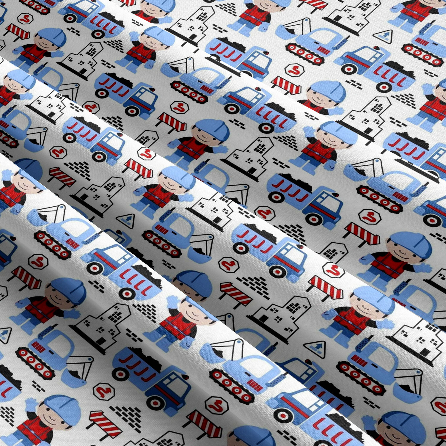 Tissu coton au métre imprimé Construction bleu