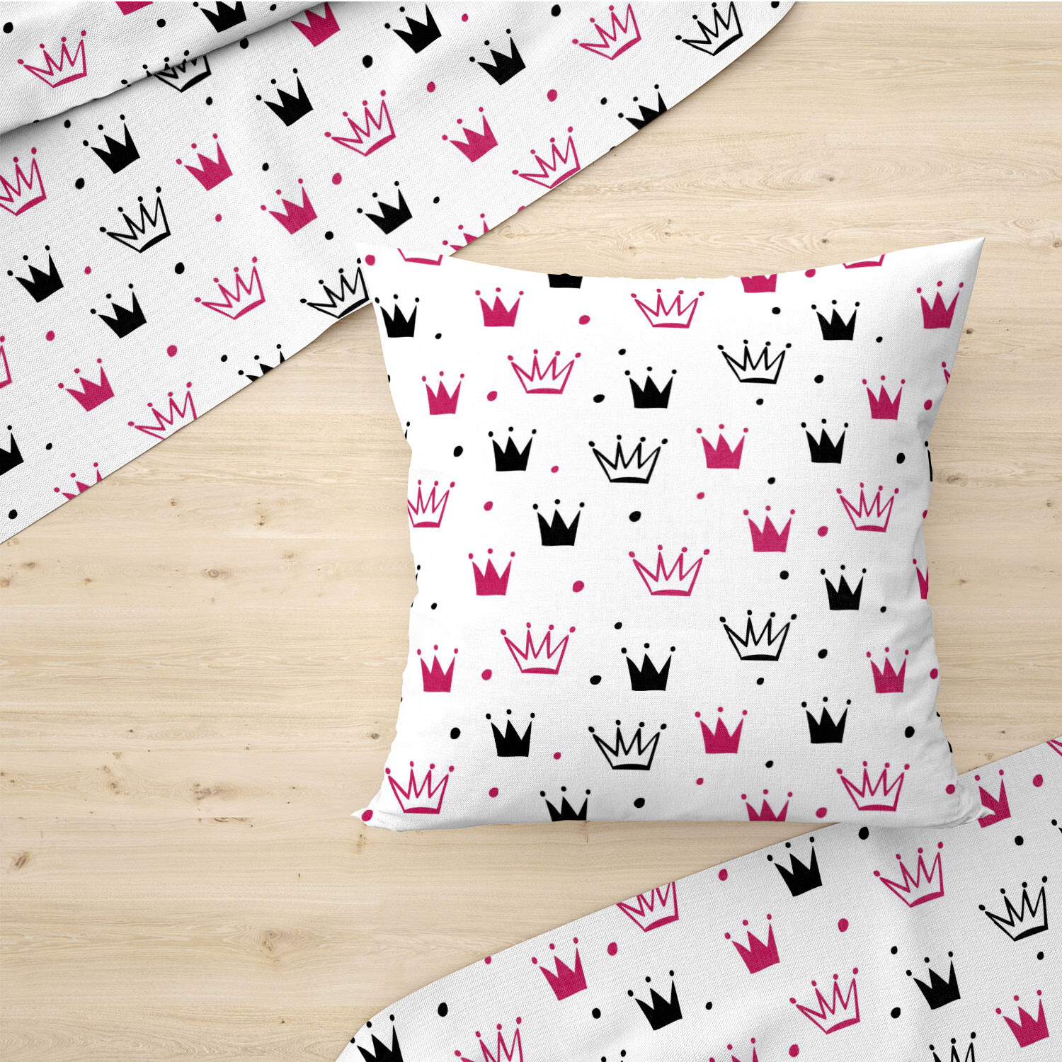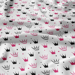 Tissu coton au mètre, 125 g/m², largeur 160 cm, imprimé Couronnes amarant et blanche