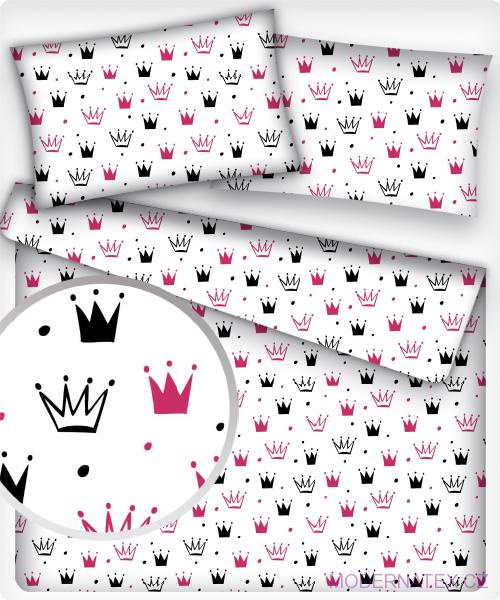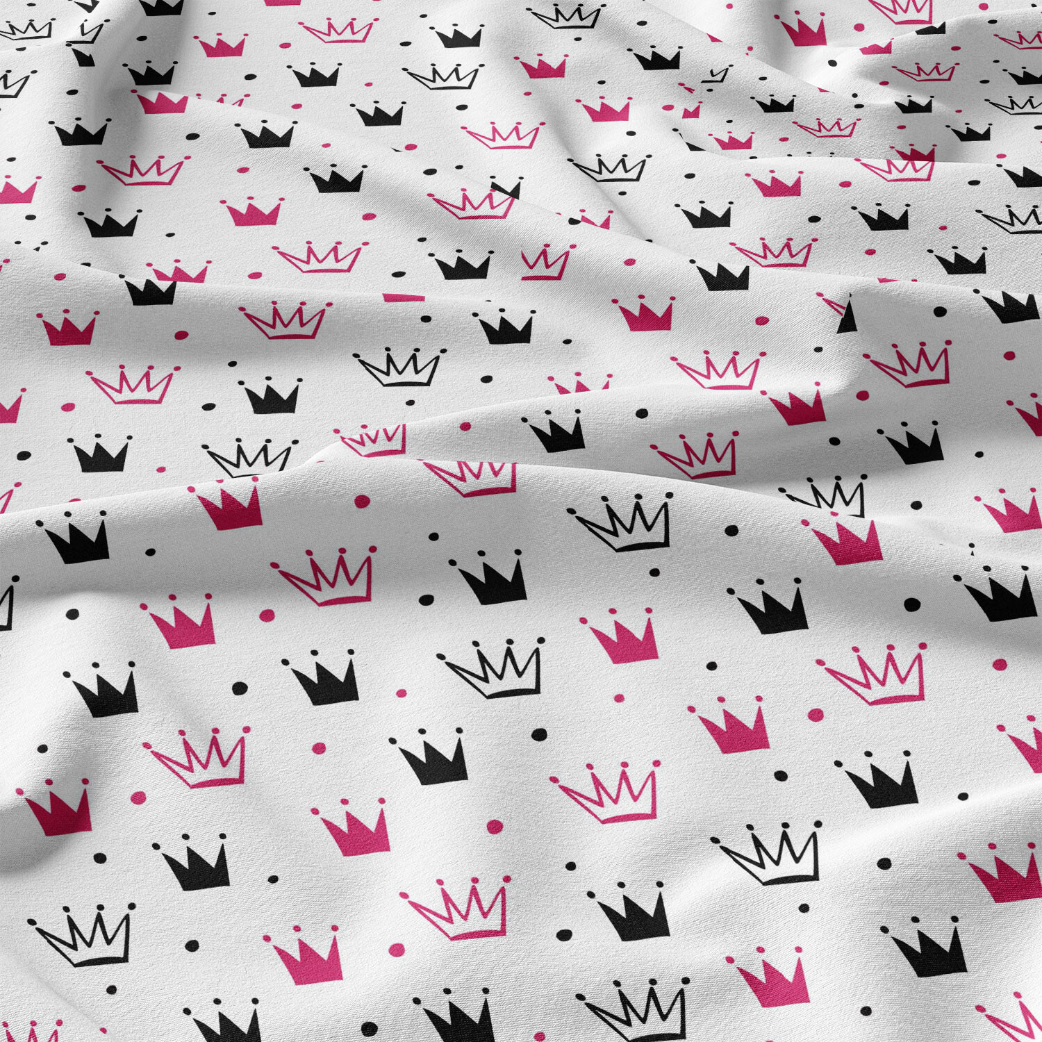 Description Tissu coton au mètre, 125 g/m², largeur 160 cm, imprimé Couronnes amarant et blanche
