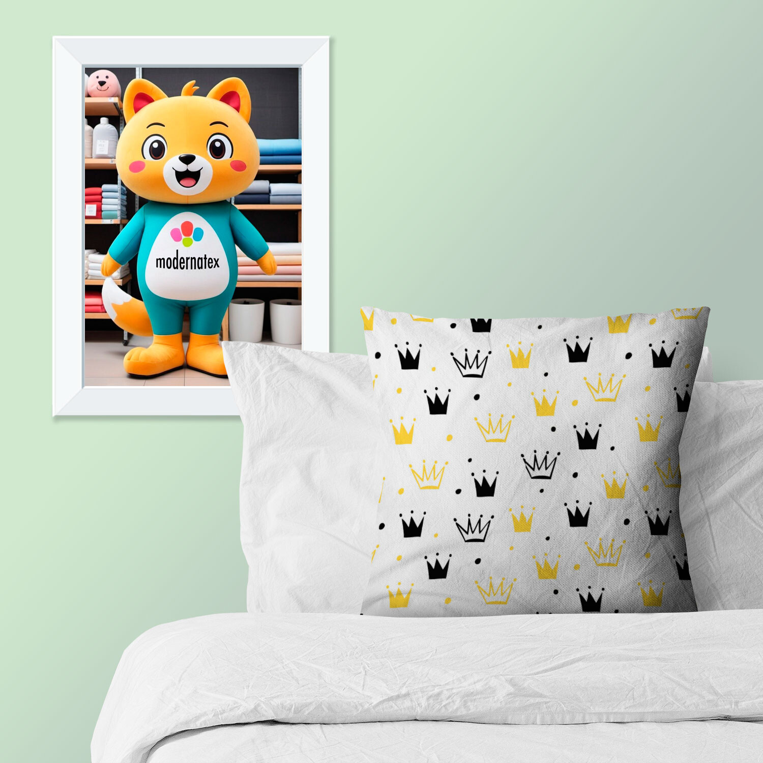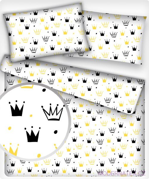 Description Tissu coton au mètre, 125 g/m², largeur 160 cm, imprimé Couronnes jaune et blanche