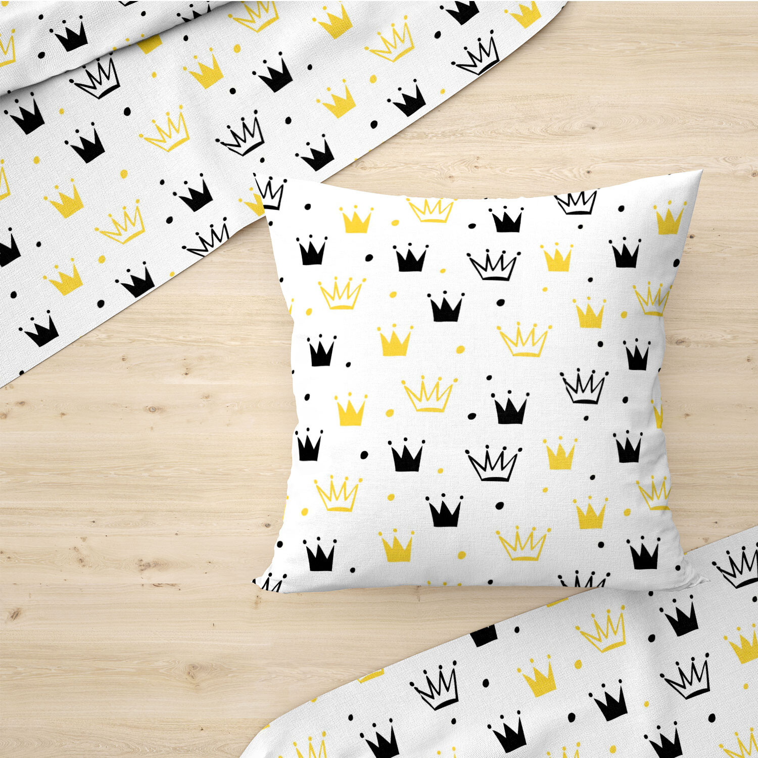 Tissu coton au mètre, 125 g/m², largeur 160 cm, imprimé Couronnes jaune et blanche