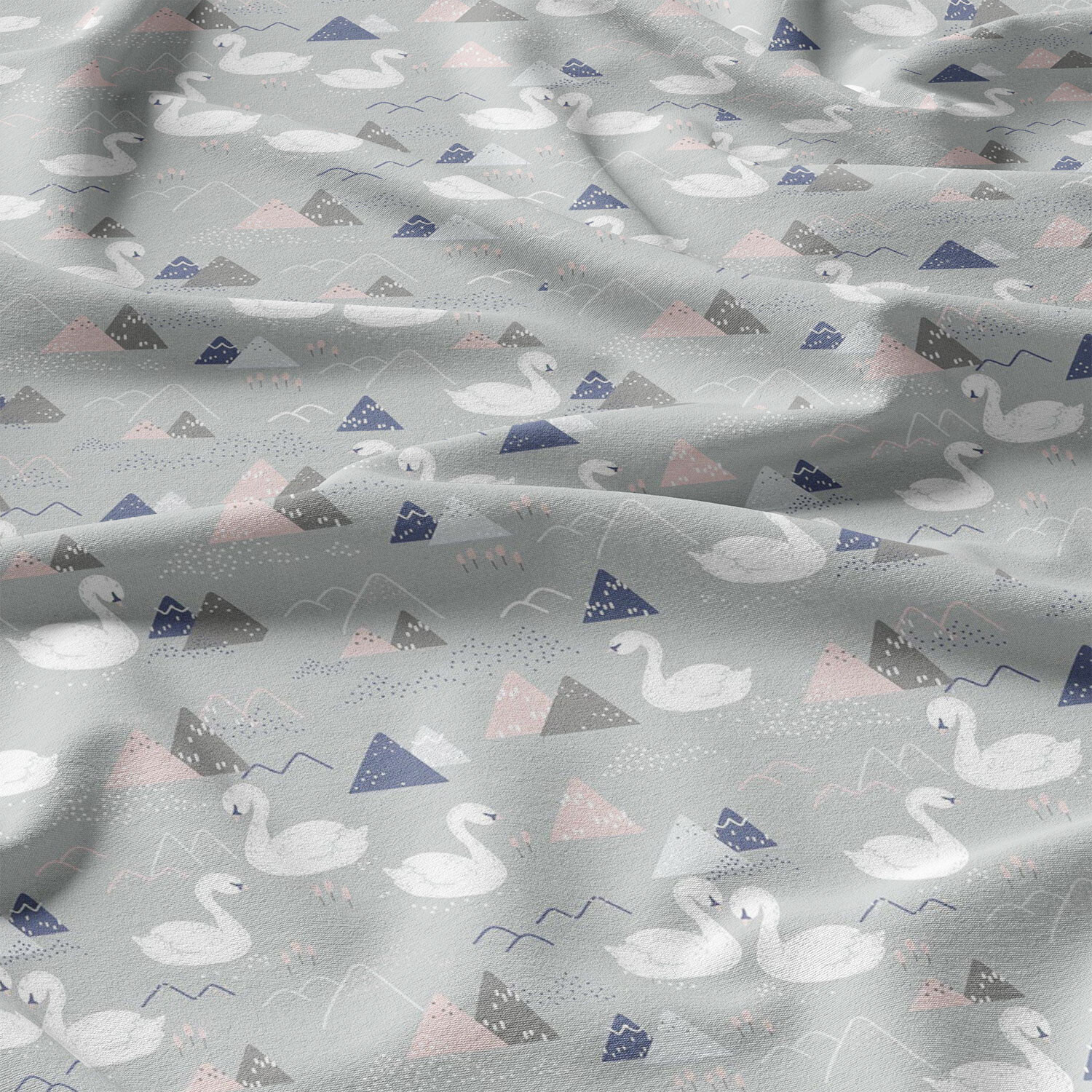 Tissu coton au métre imprimé Cygnes couleur gris