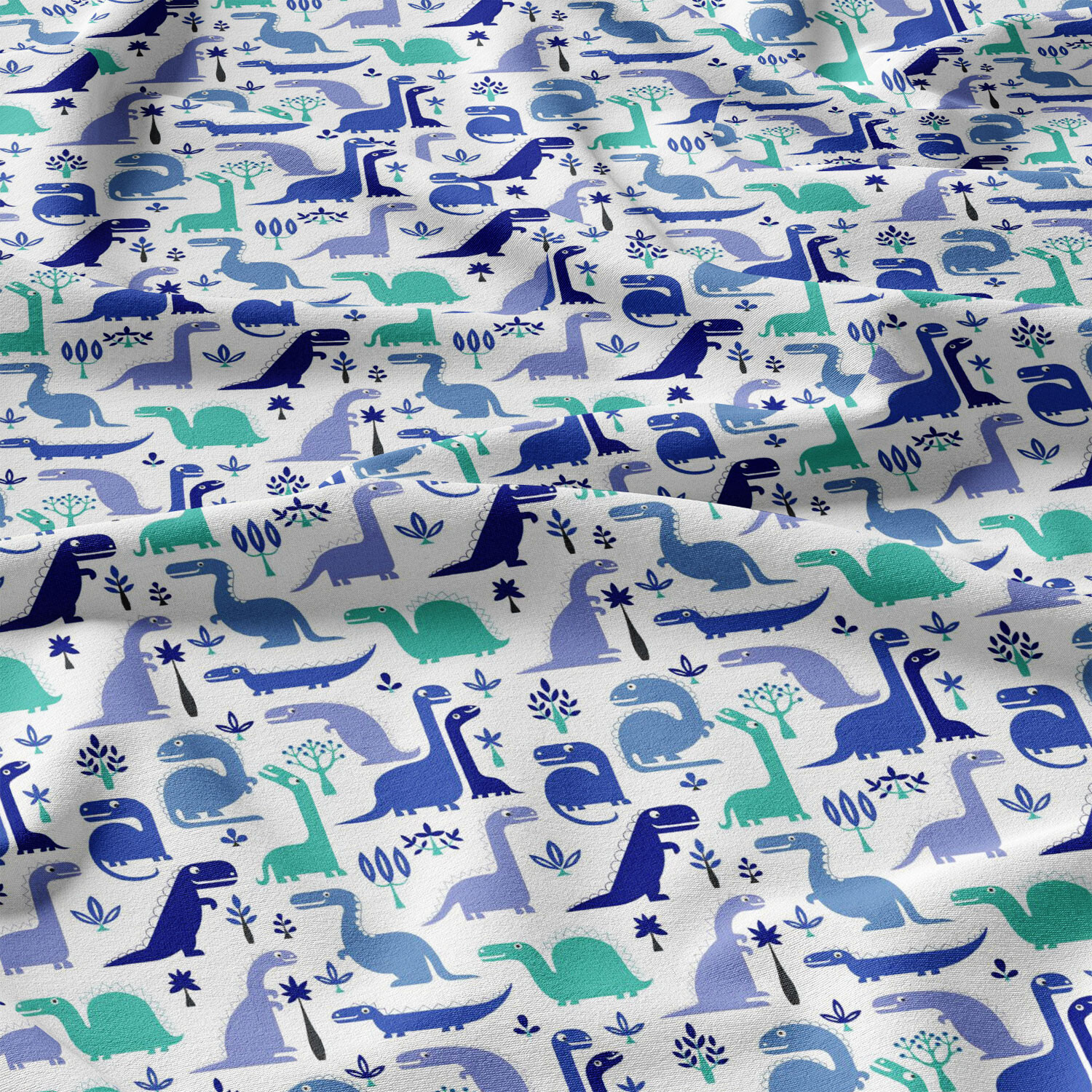 Tissu coton au métre imprimé Dinosaures couleur turquoise