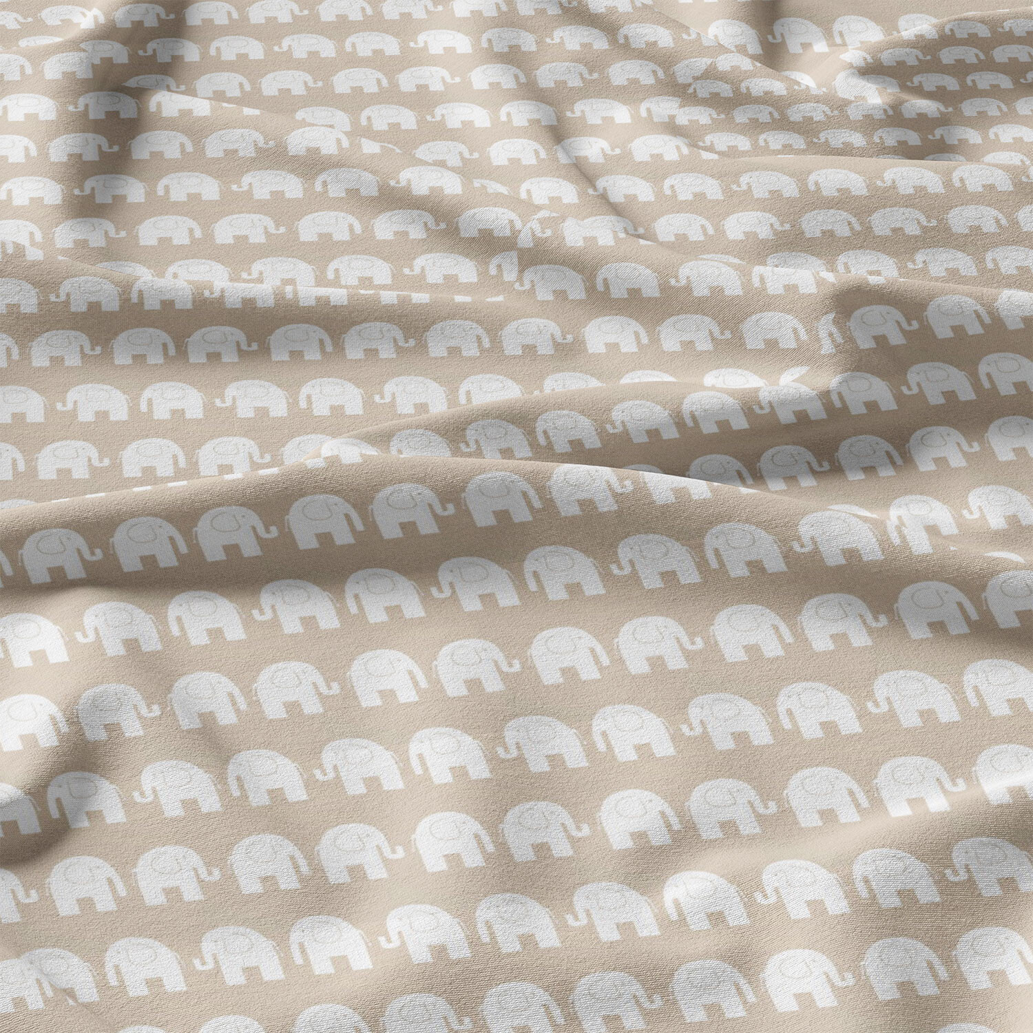 Tissu coton au métre imprimé Eléphants couleur biege