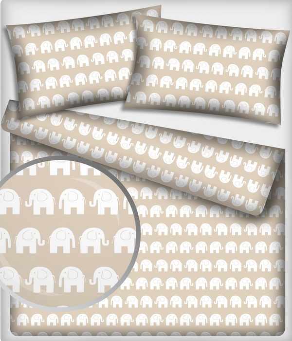 Description Tissu coton au métre imprimé Eléphants couleur biege