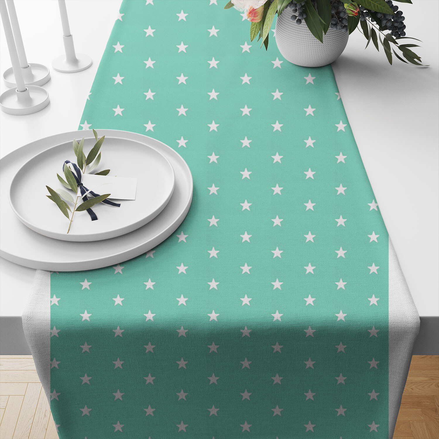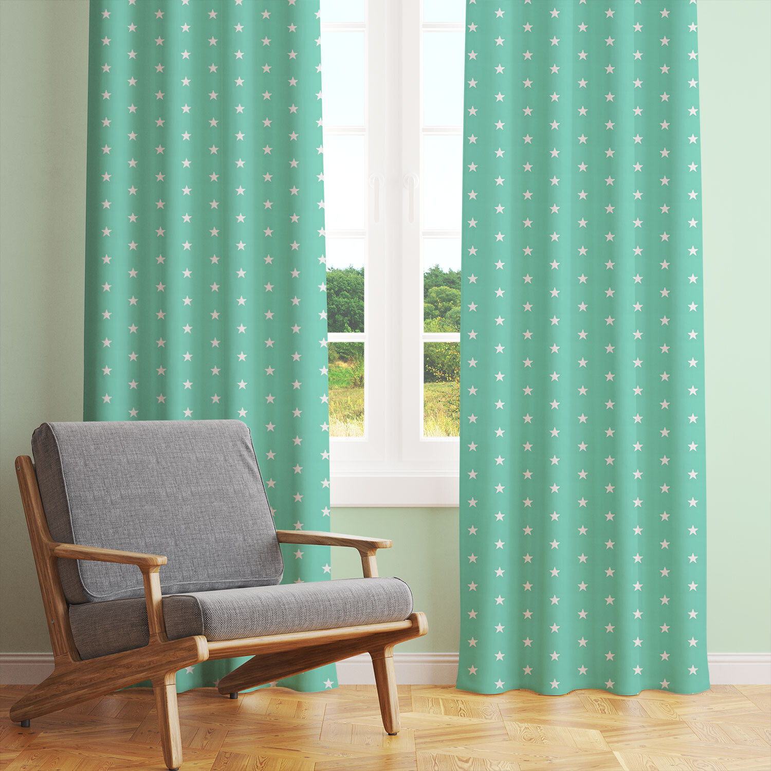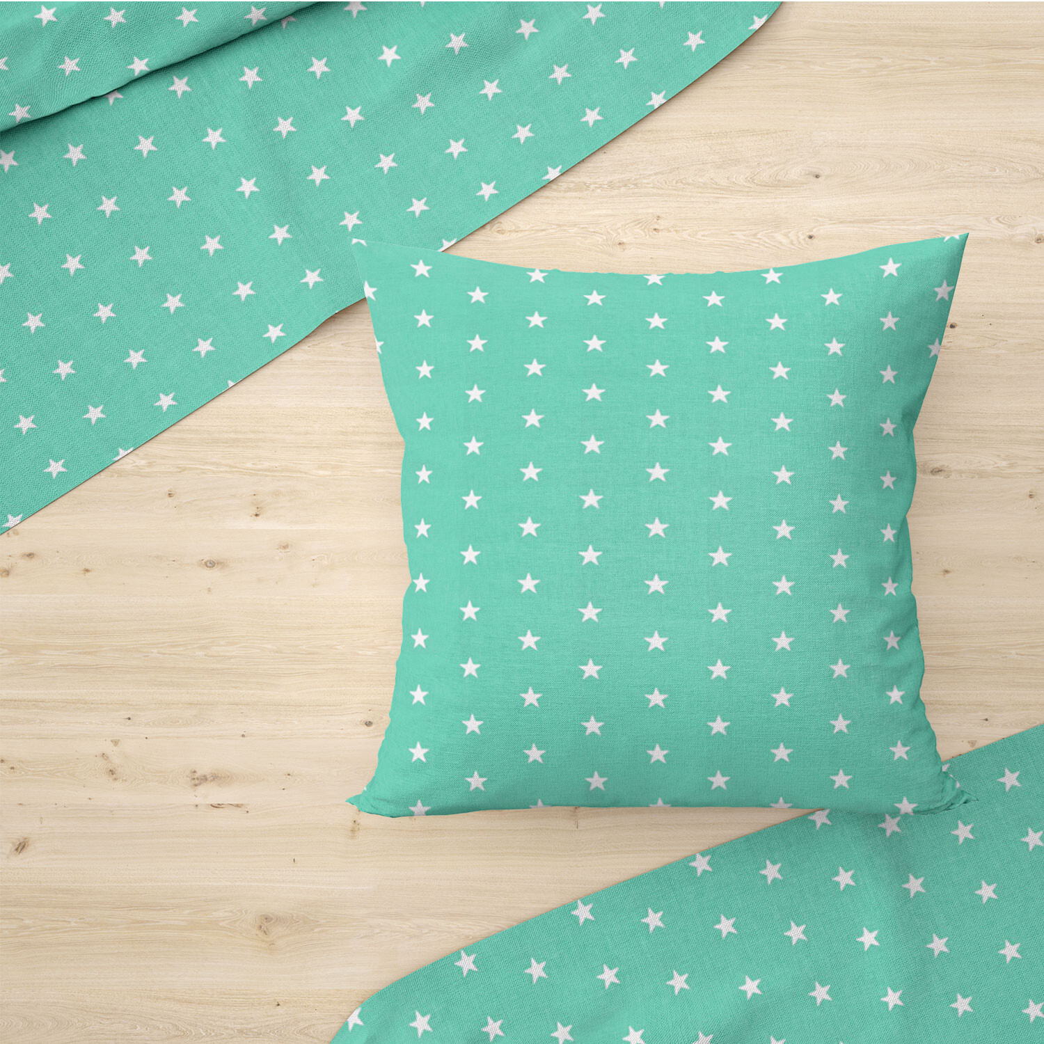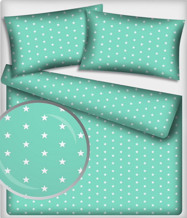 Description Tissu coton au mètre, 125 g/m², largeur 160 cm, imprimé Etoiles menthol