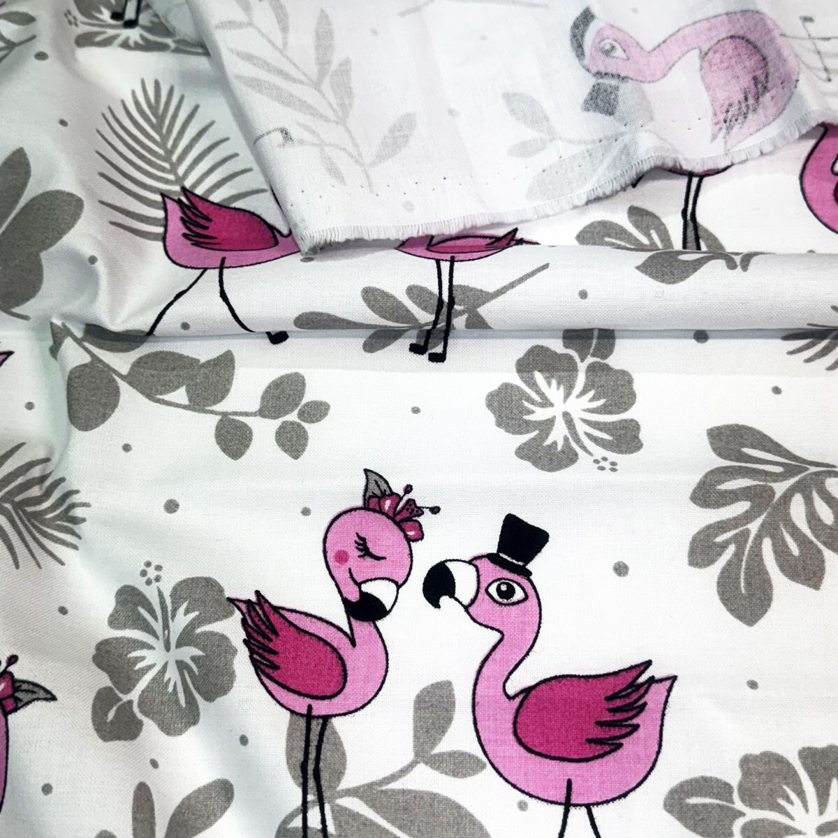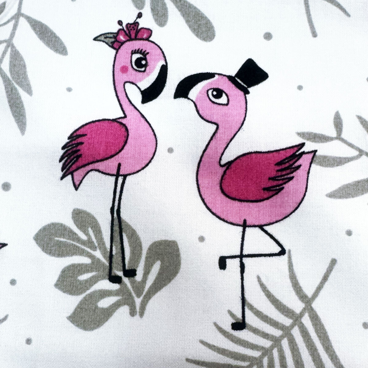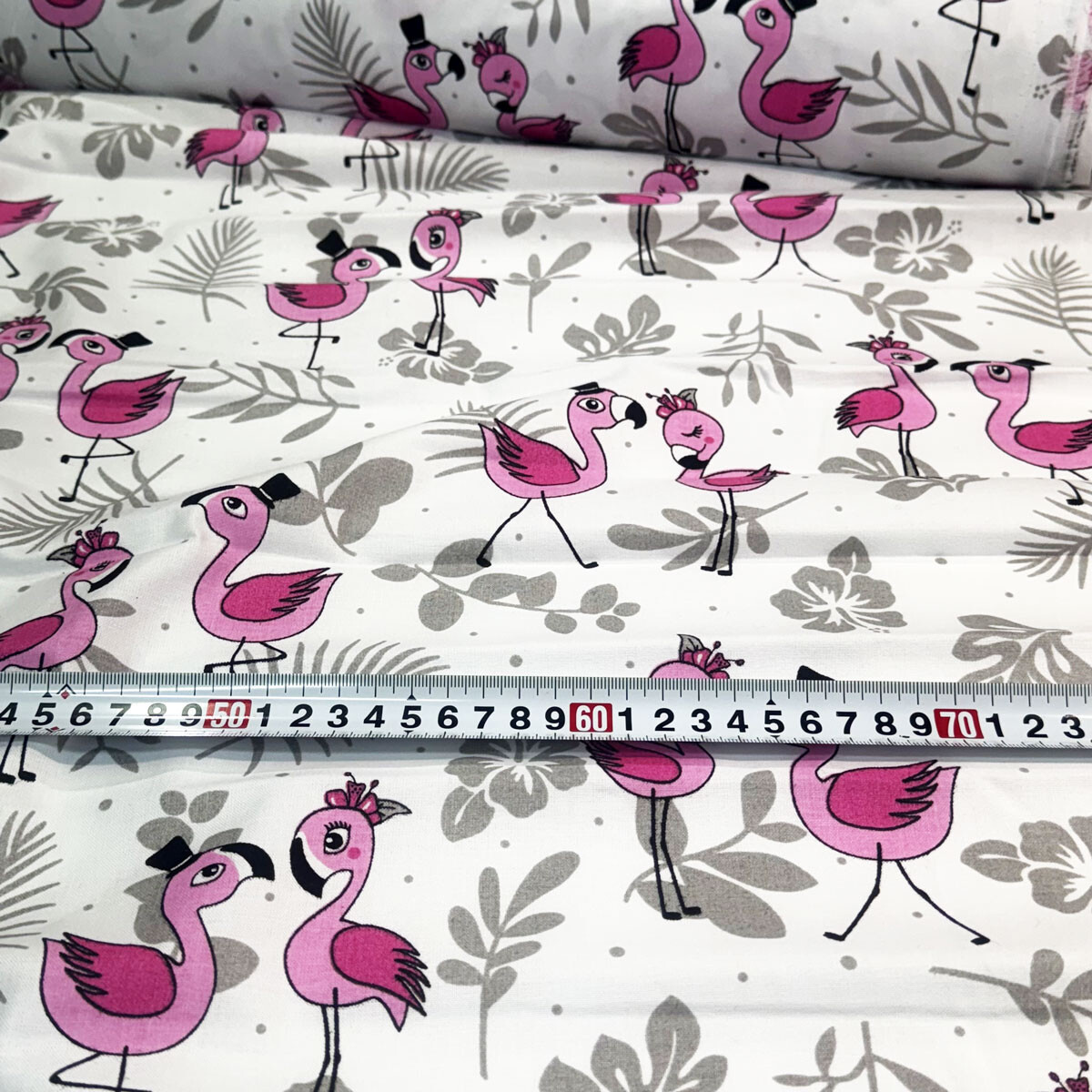 Description Tissu coton au métre imprimé Flamant Baby couleur blanche