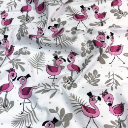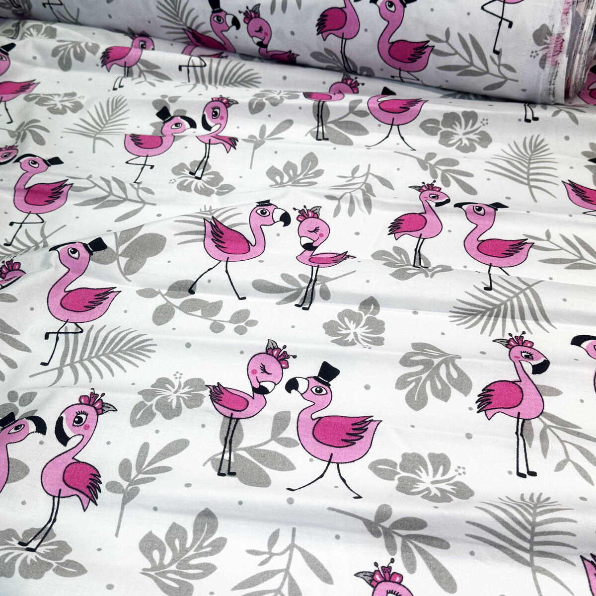 Tissu coton au métre imprimé Flamant Baby couleur blanche