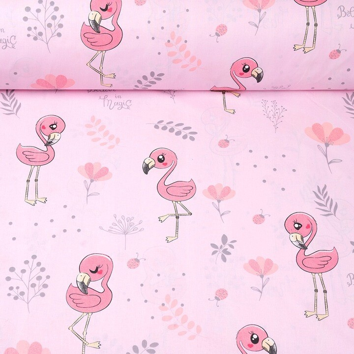 Description Tissu coton au métre imprimé Flamant Baby couleur rose