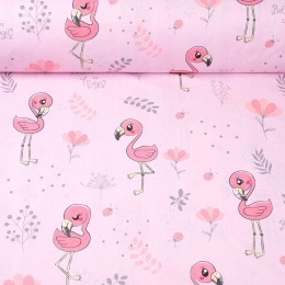 Tissu coton au métre imprimé Flamant Baby couleur rose