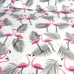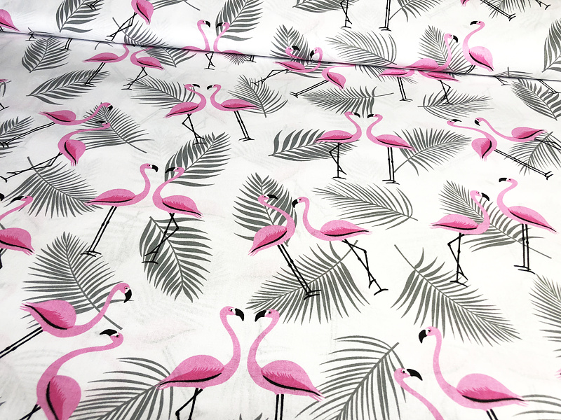 Tissu coton au métre imprimé Flamant et feuilles gris