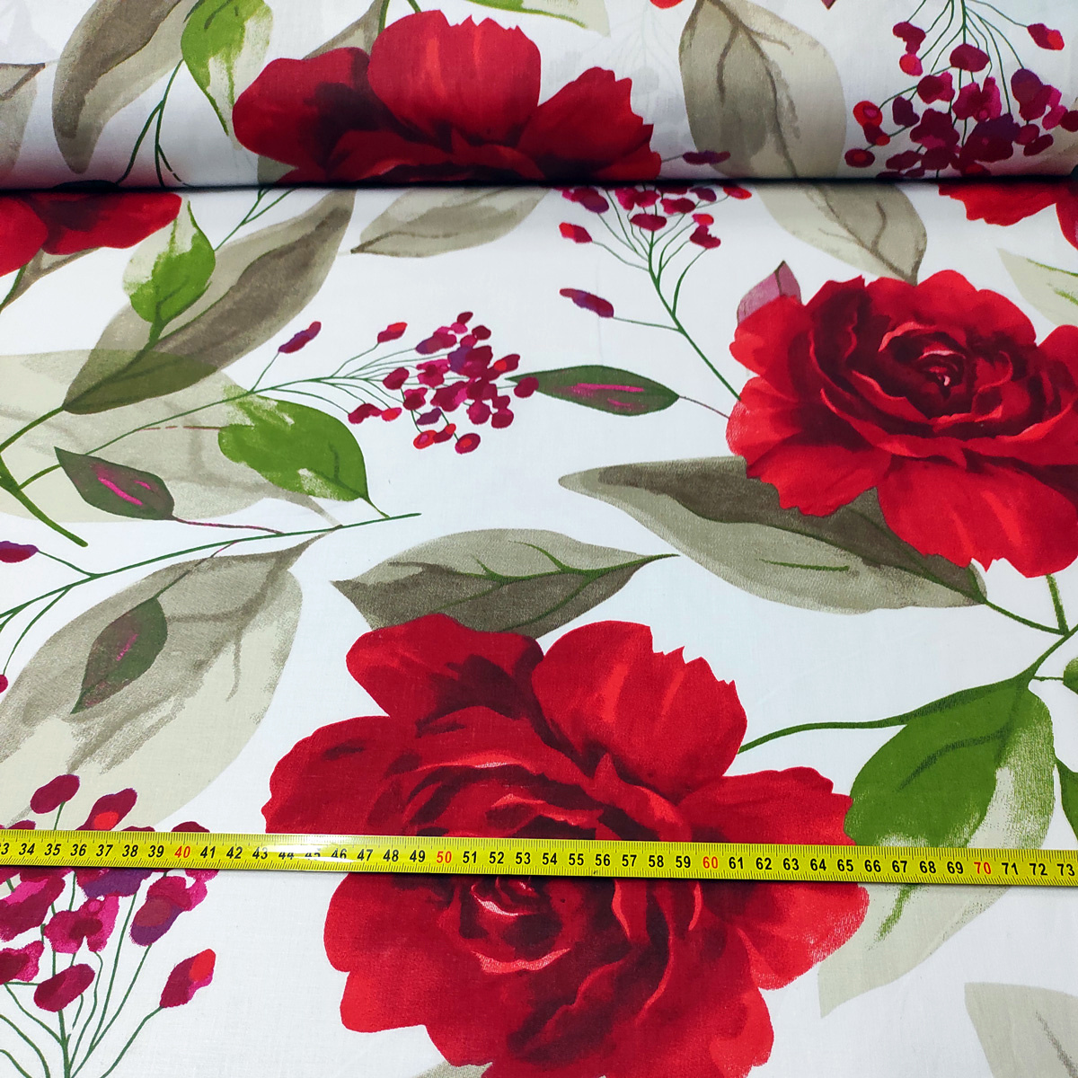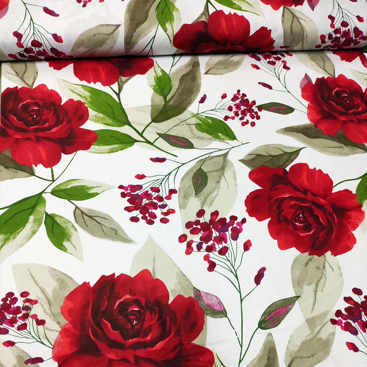 Description Tissu en coton au mètre, 125 g/m², largeur 160 cm, imprimé à fleurs rouges