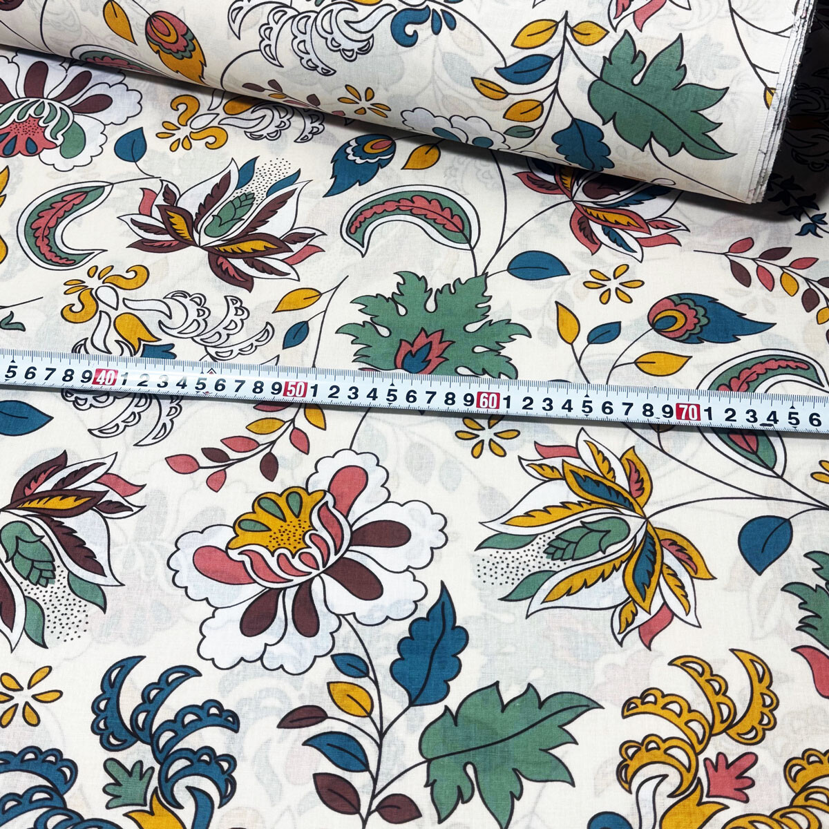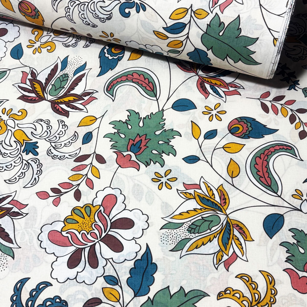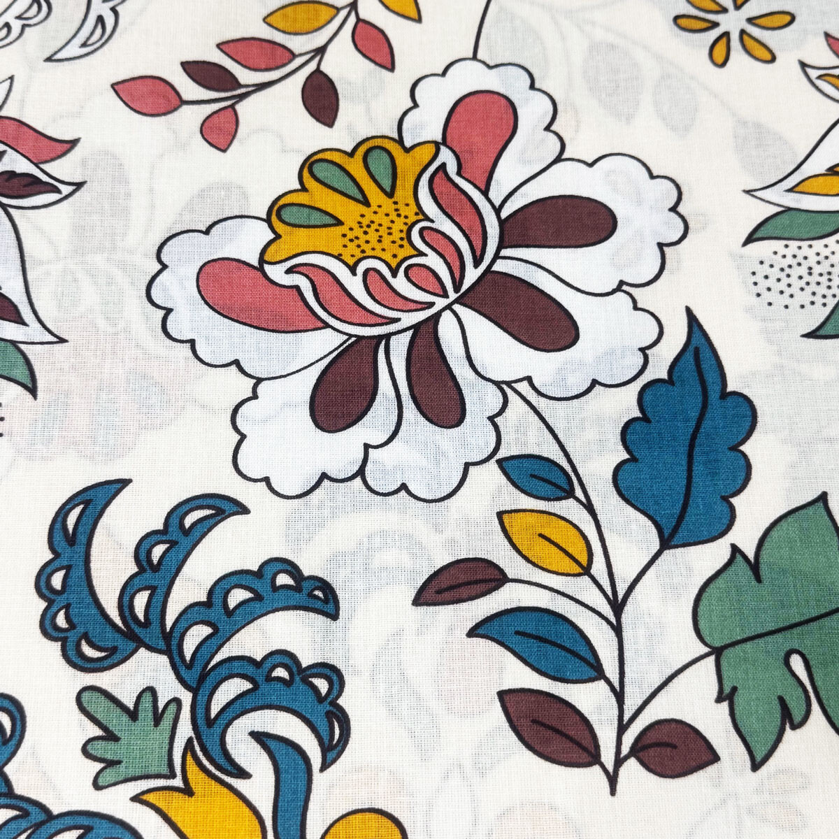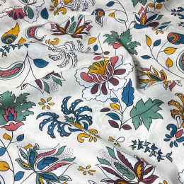 Description Tissu en coton au mètre, 125 g/m², largeur 160 cm, imprimé à fleurs sur fond blanc