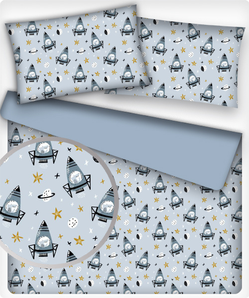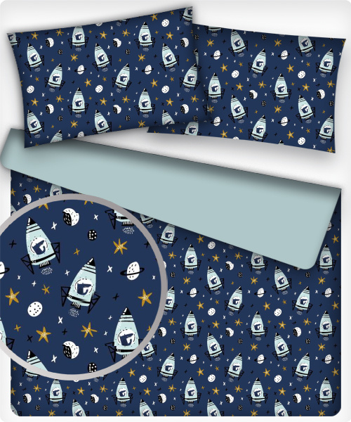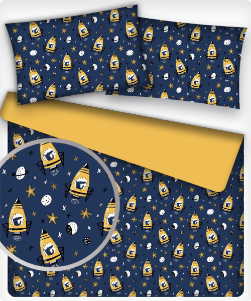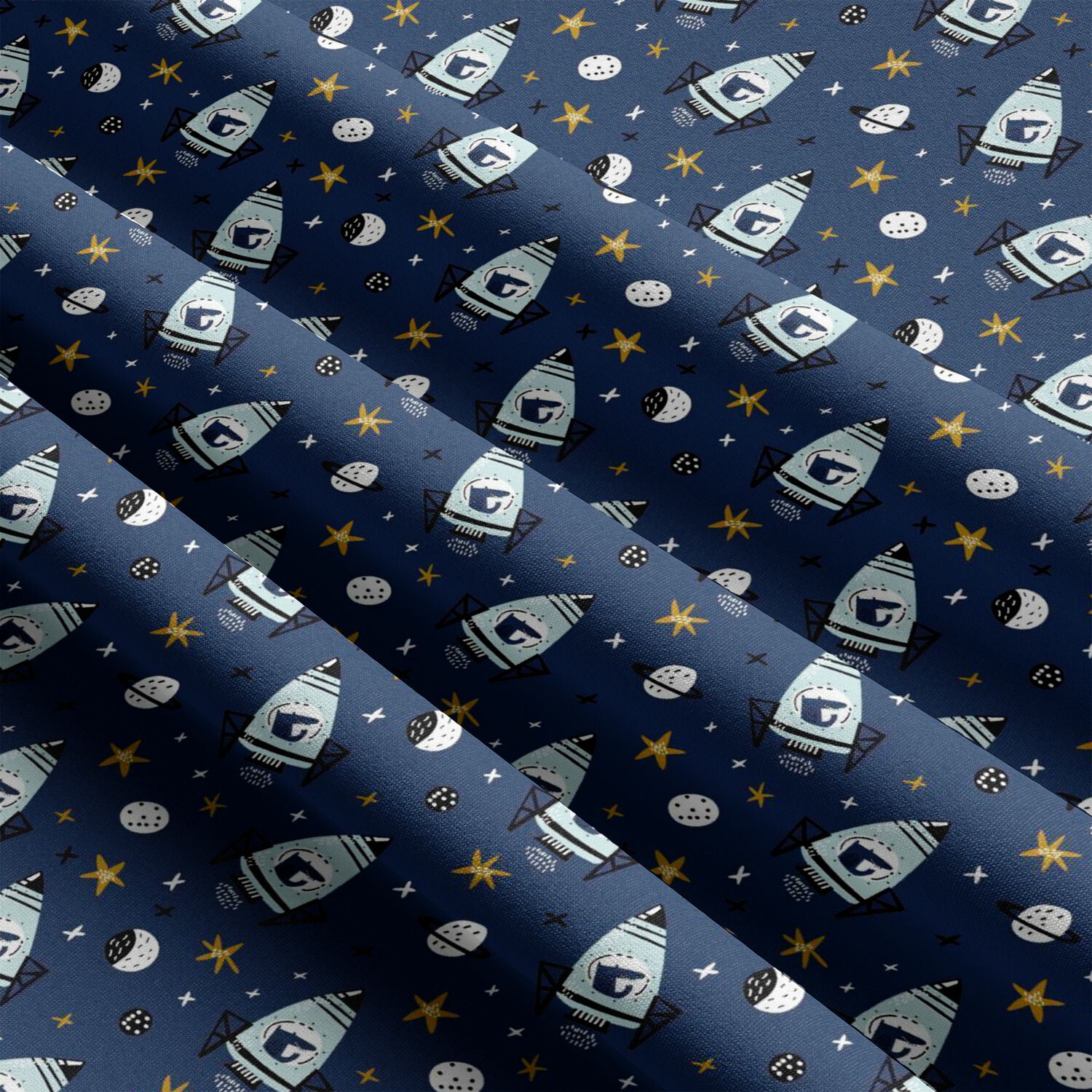 Description Tissu coton au métre imprimé Fusées grenat 675