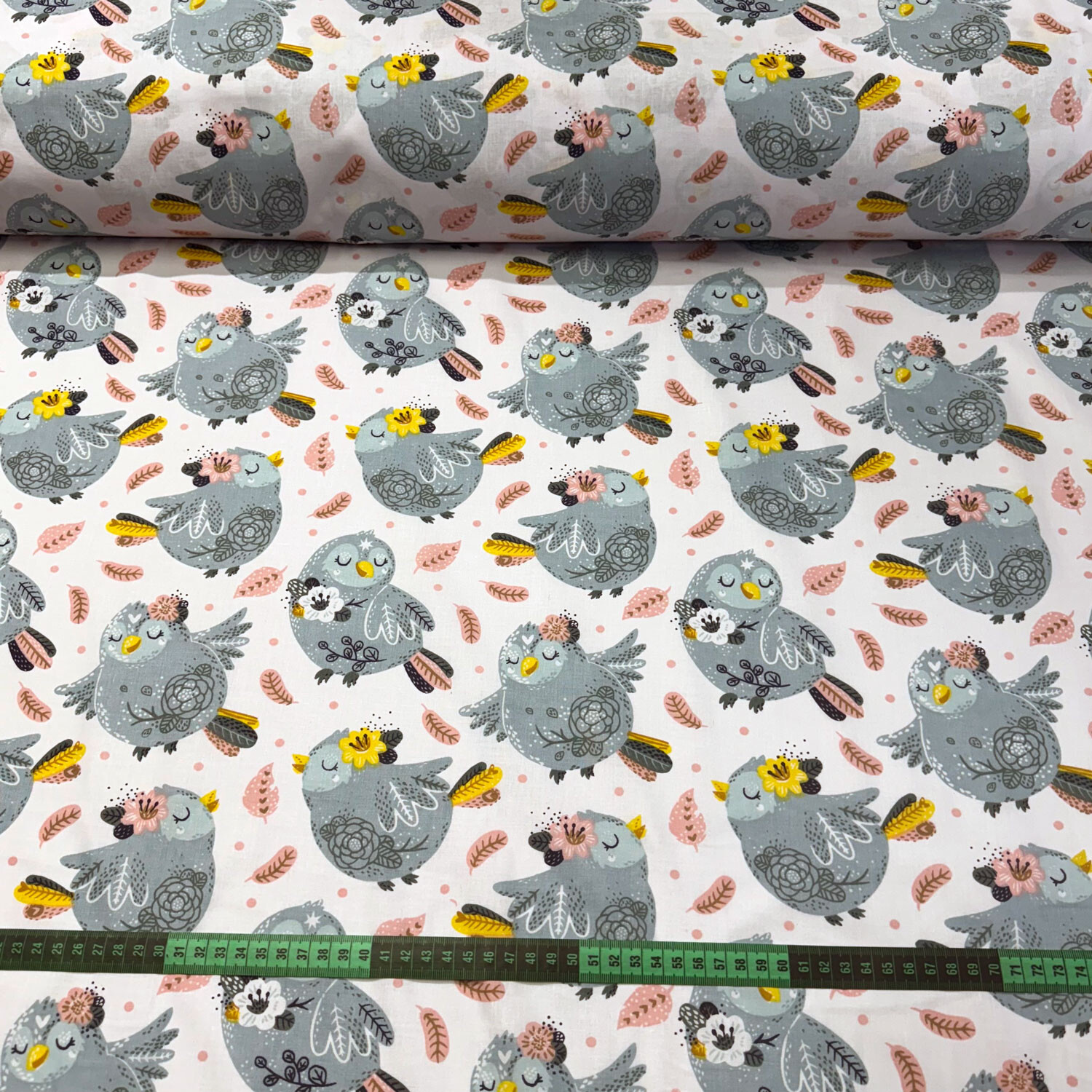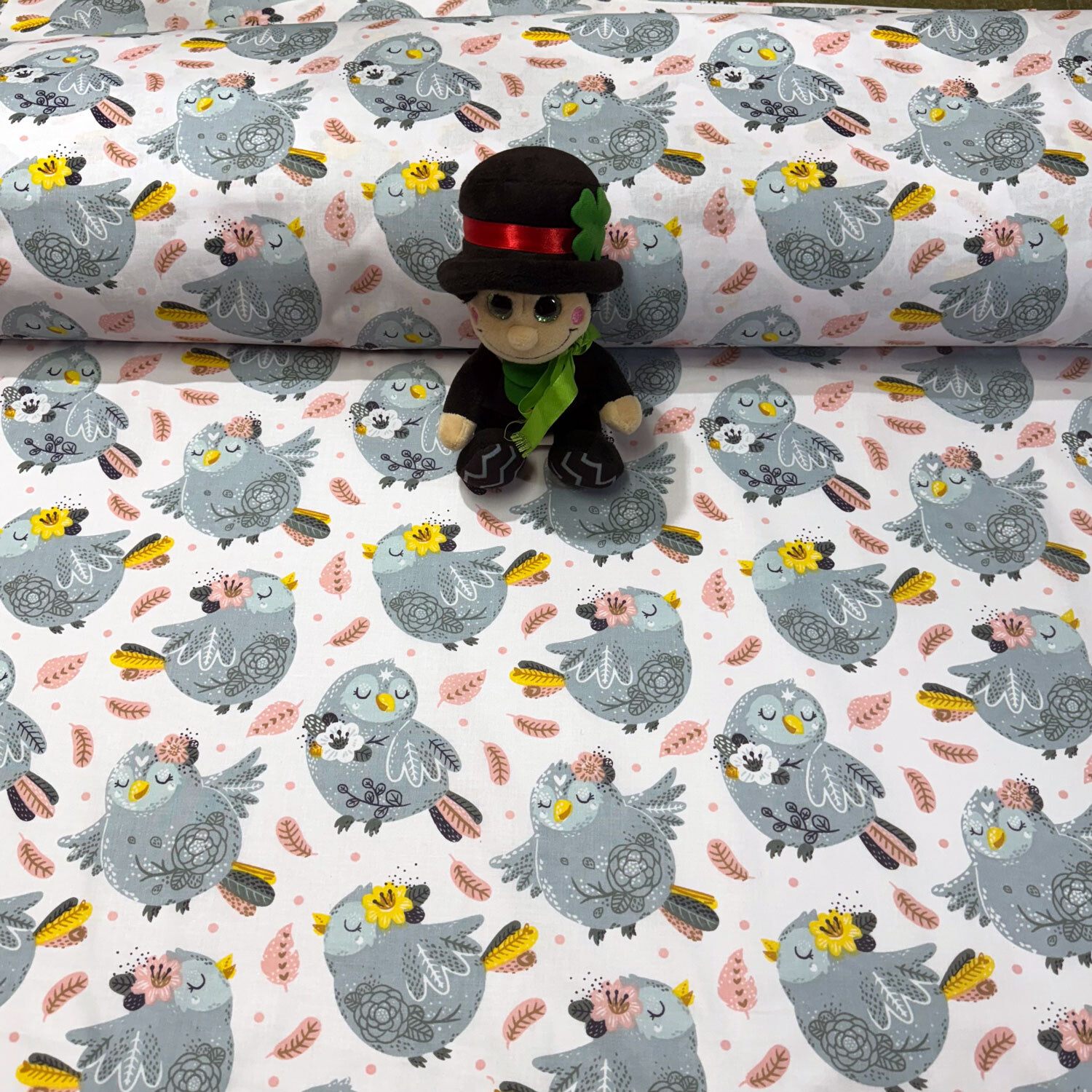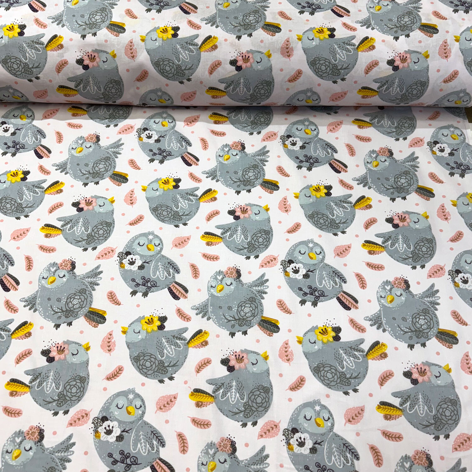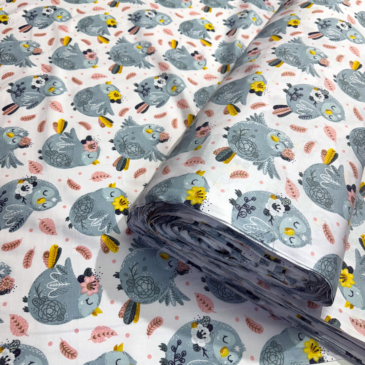 Tissu coton au métre imprimé Hiboux couleur blanche