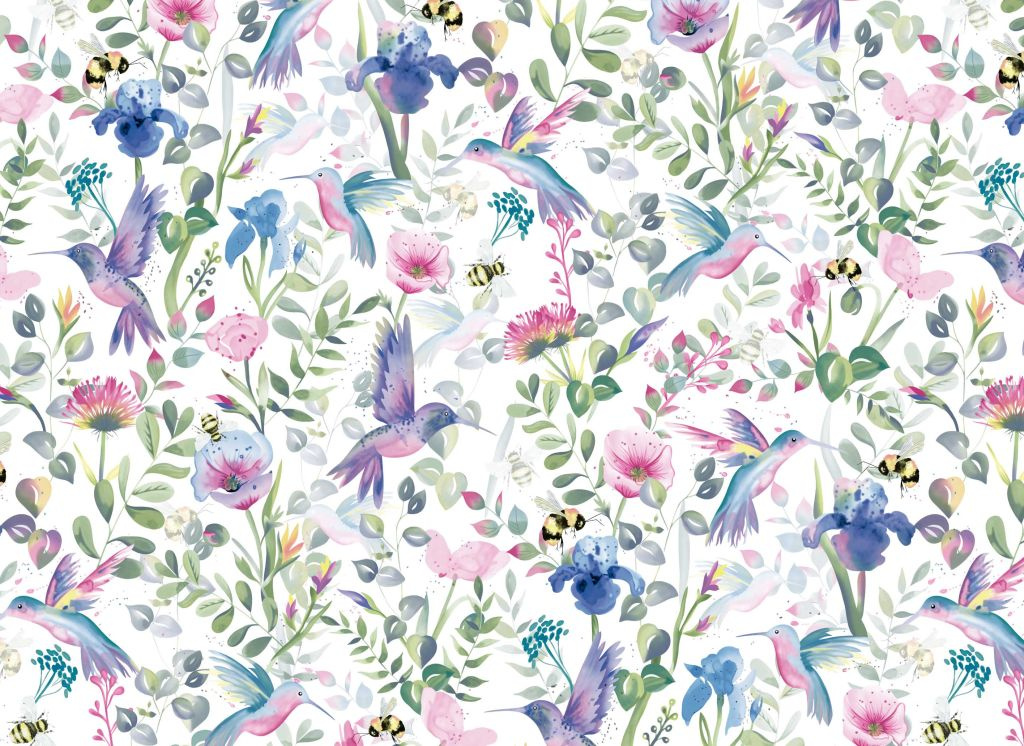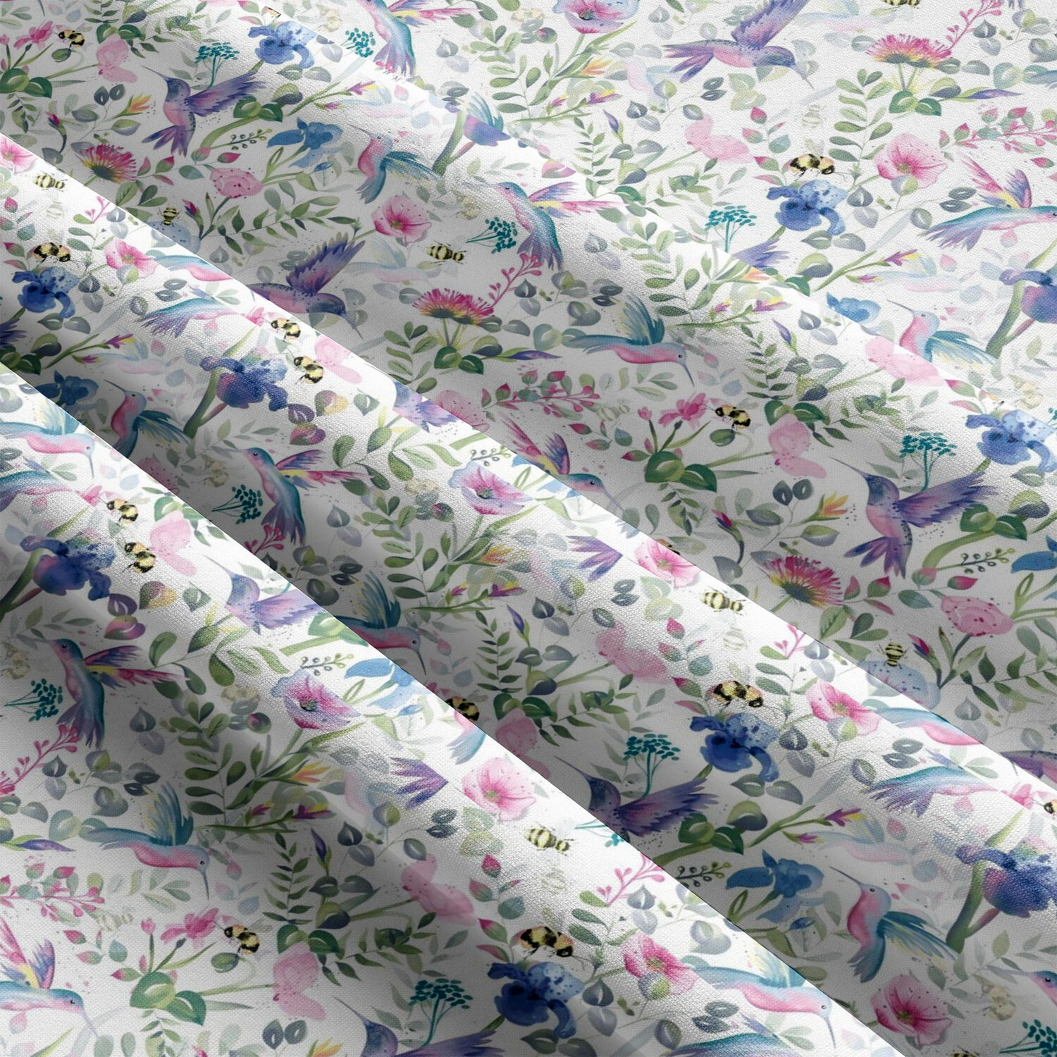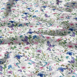Description Tissu coton au métre imprimé Loriot couleur blanche