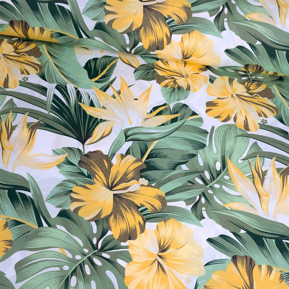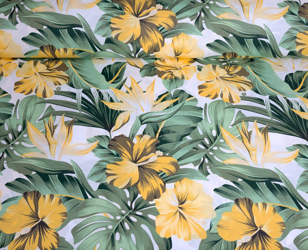 Description Tissu en coton au mètre, 125 g/m², largeur 160 cm, imprimé à monstera sur fond vert