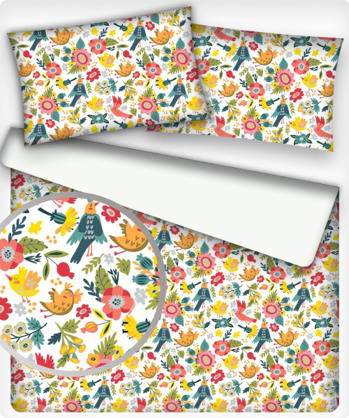 Tissu coton au métre imprimé Oiseaux de paradis couleur blanche