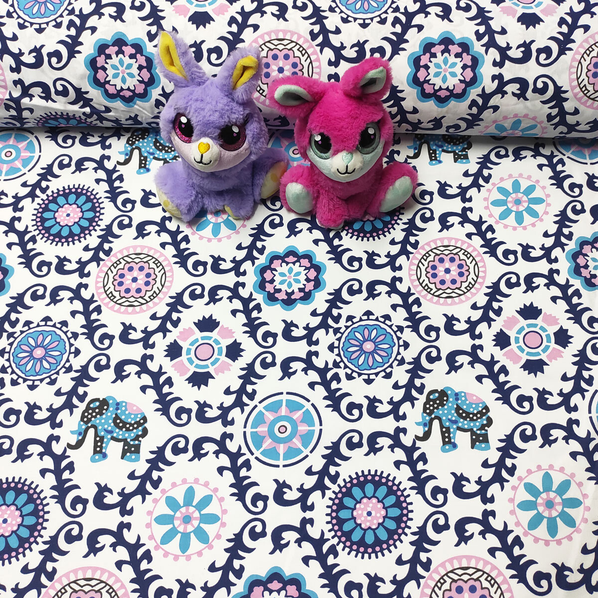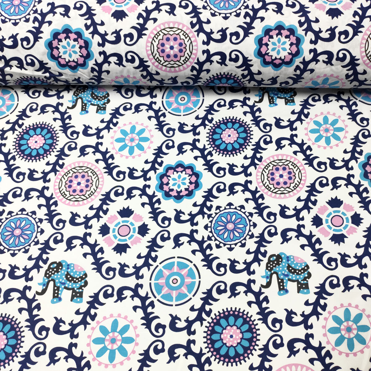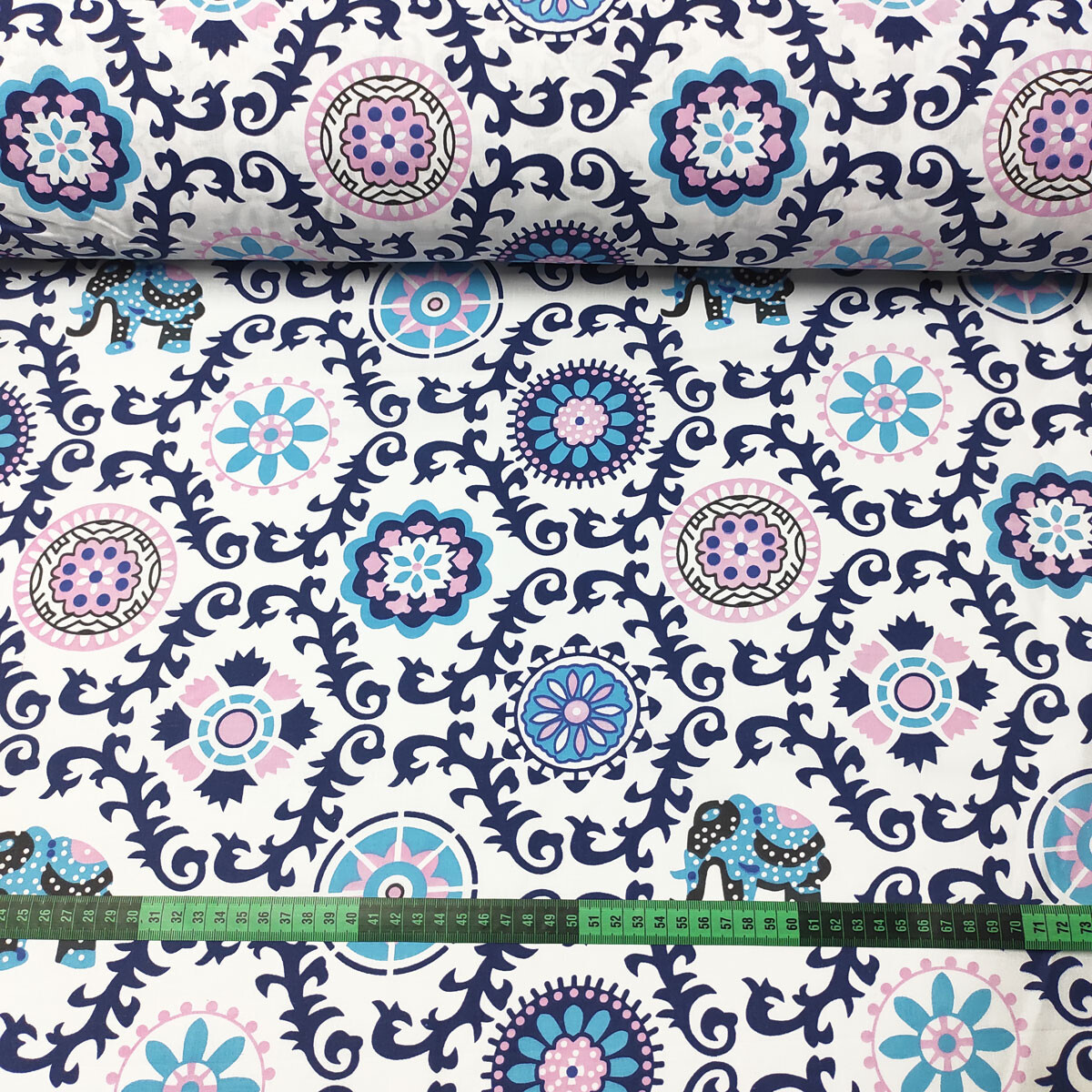 Description Tissu coton au métre imprimé Oriental bleu 2