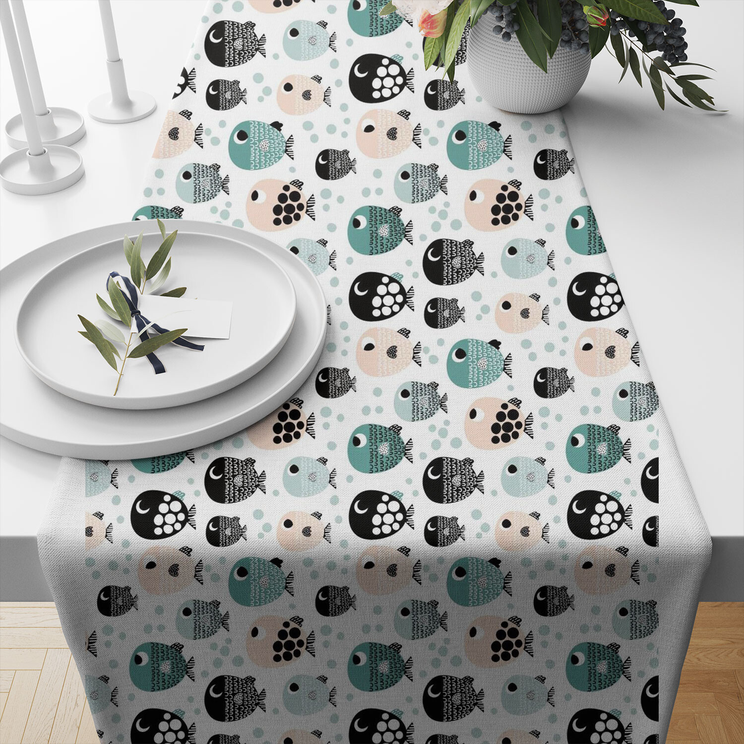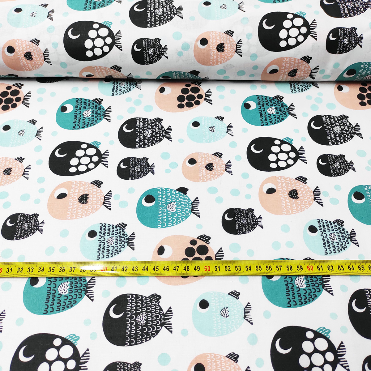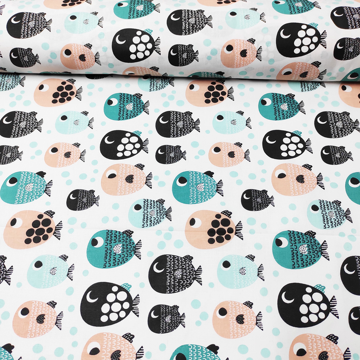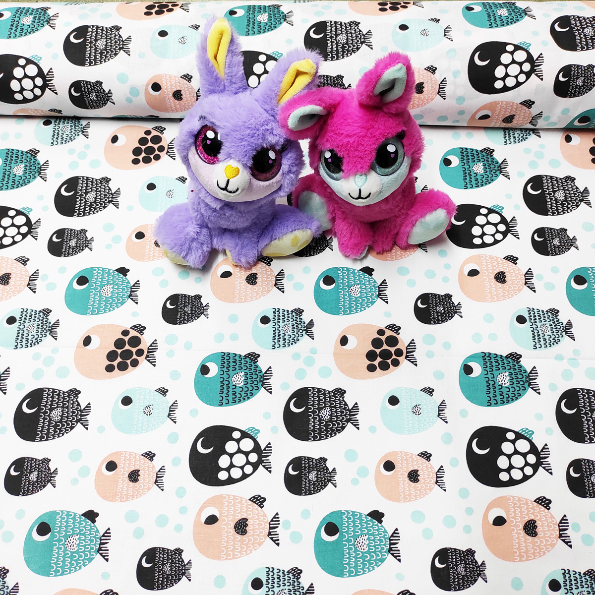 Tissu coton au métre imprimé Poissons sur blanc