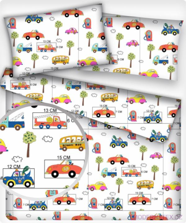 Description Tissu coton au métre imprimé Voitures MIX blanche