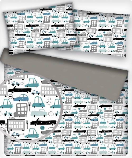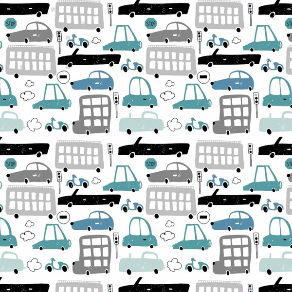 Description Tissu coton au métre imprimé Voitures turquoise modern