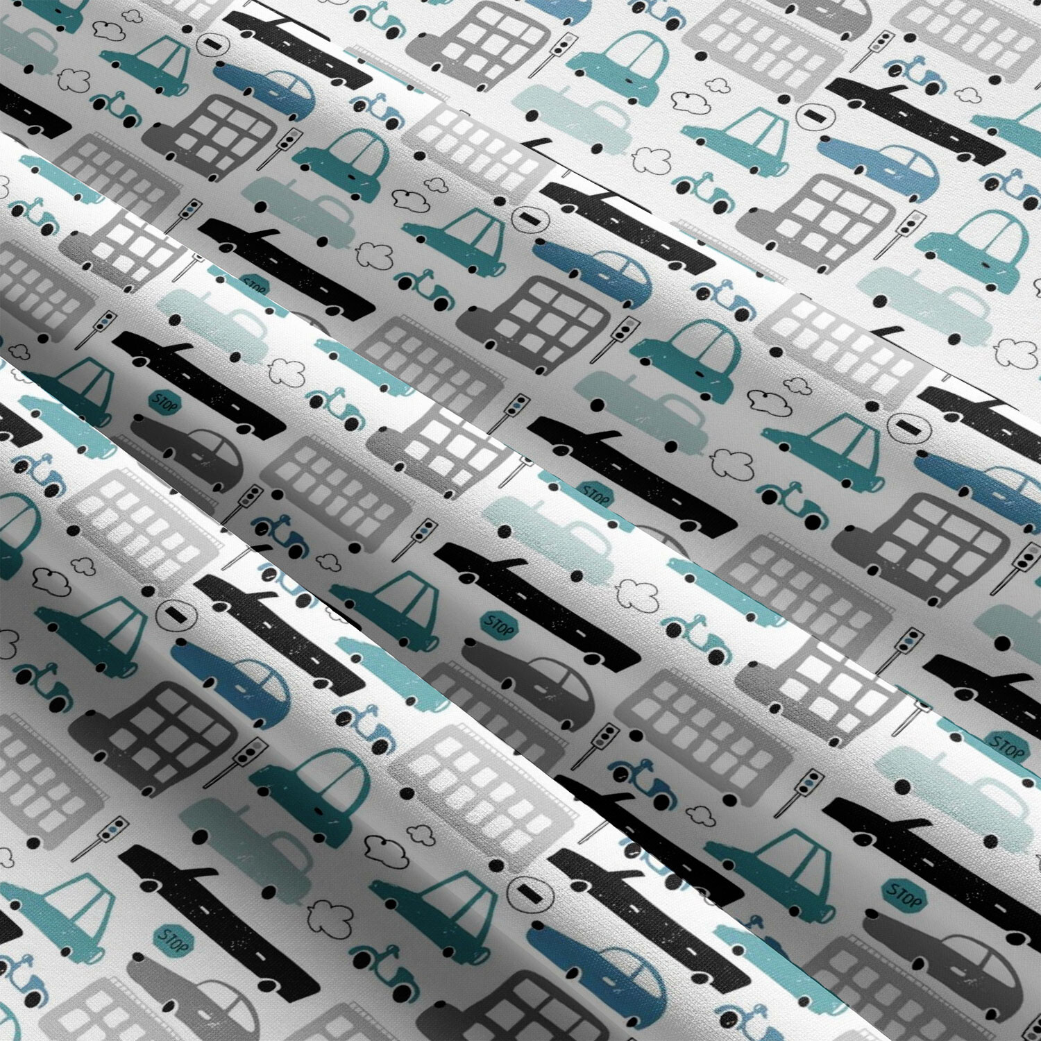 Tissu coton au métre imprimé Voitures turquoise modern