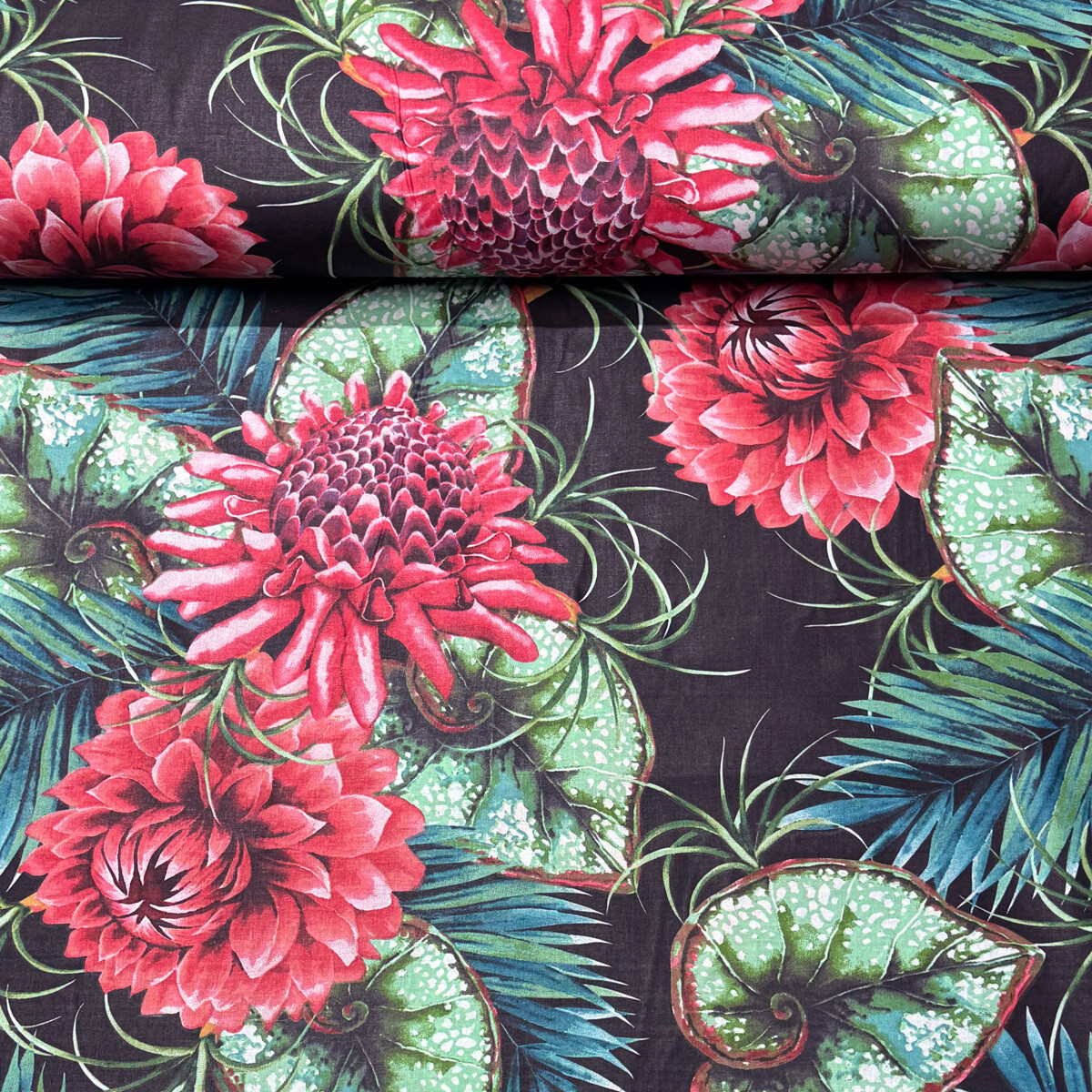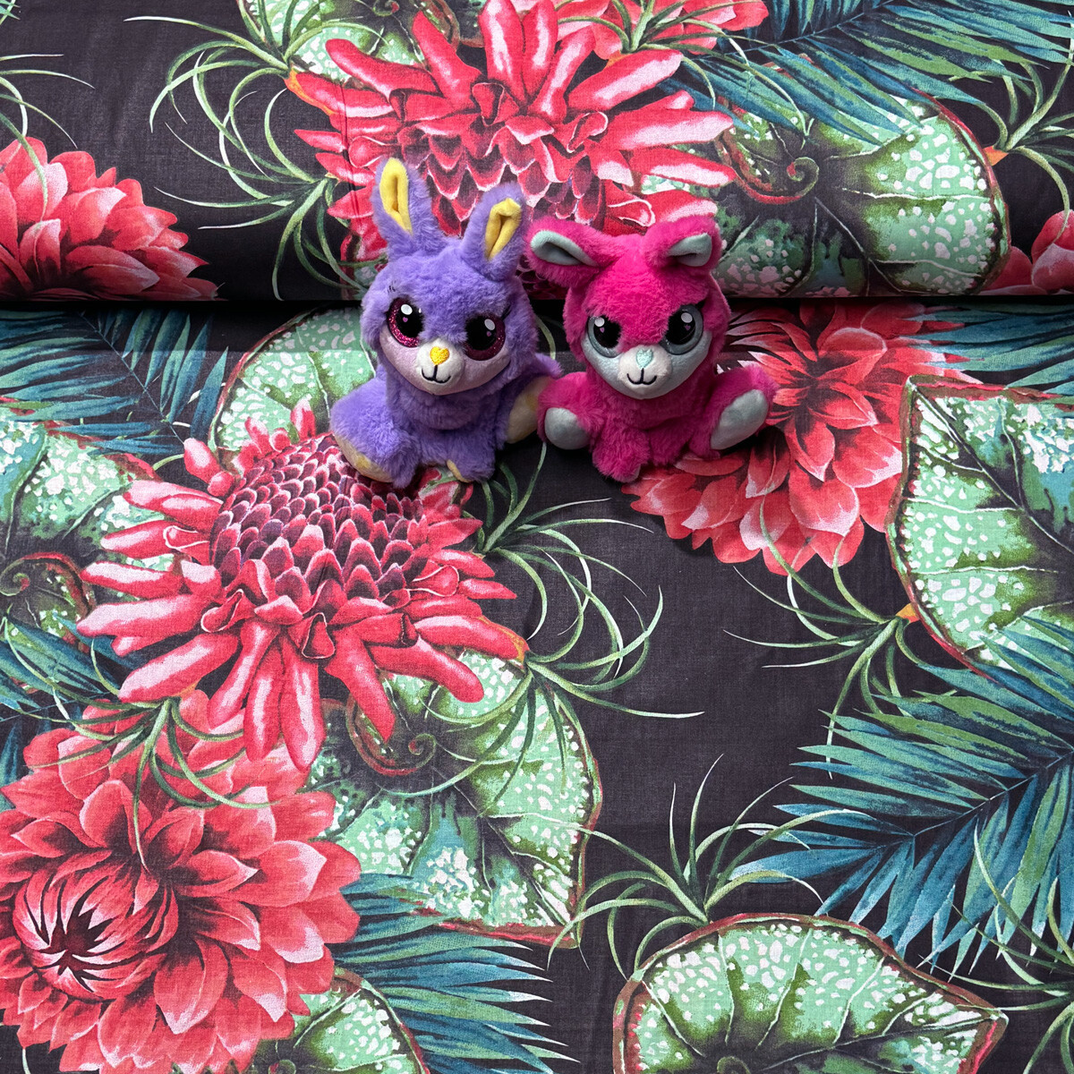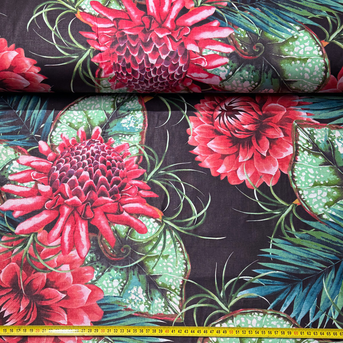Description Tissu en coton au mètre, 125 g/m², largeur 160 cm, imprimé à chrysanthème noir