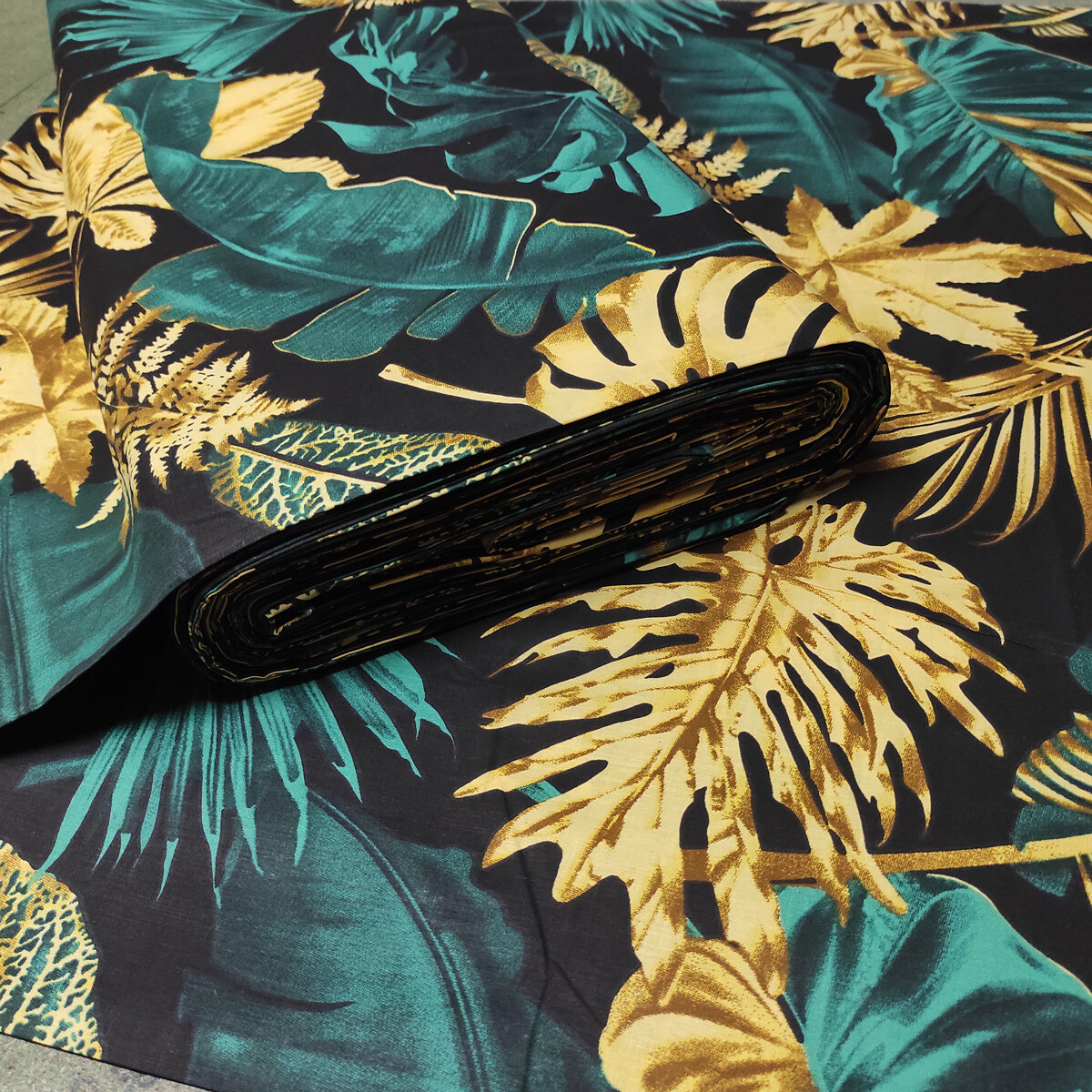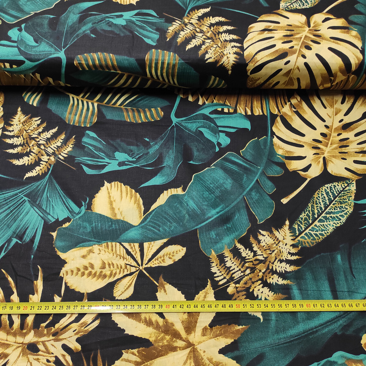 Description Tissu en coton au mètre, 125 g/m², largeur 160 cm, imprimé à feuilles jaunes
