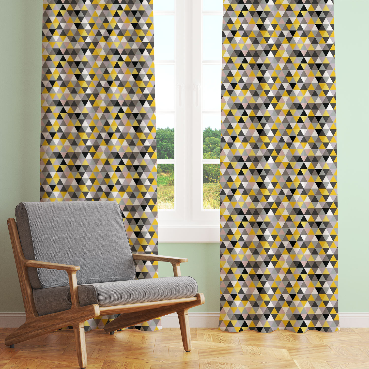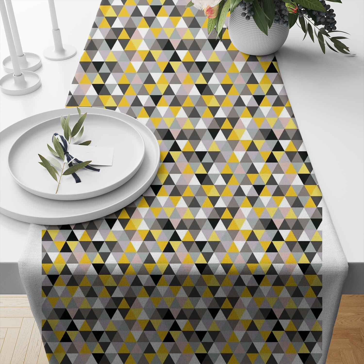 Description Tissu en coton uni au mètre, 125 g/m², largeur 160 cm, Triangulair jaune gris