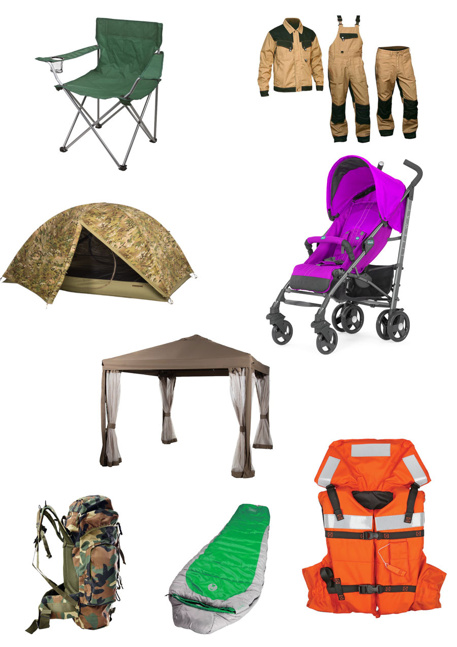 Conçu pour les besoins du camping, de la pêche et des activités en plein air : tentes, sacs à dos, housses, bâches.